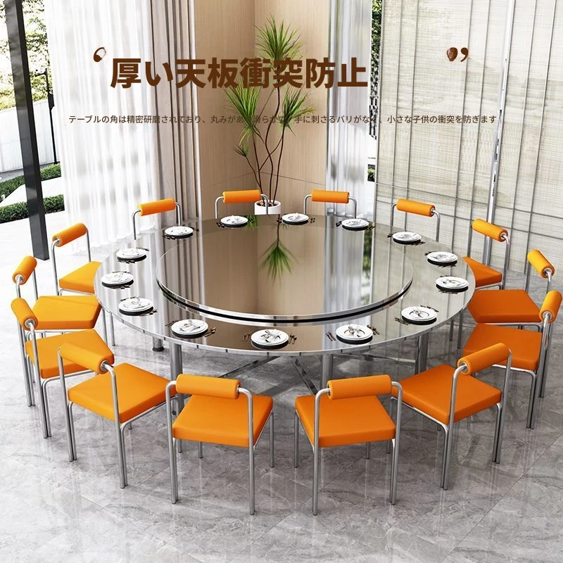 特厚304ステンレス製折りたたみ円形テーブル - 家庭用・業務用に最適!耐久性抜群、スタイリッシュなデザインで、食事の時間をより特別に。回転式テーブルで使い勝手も抜群!