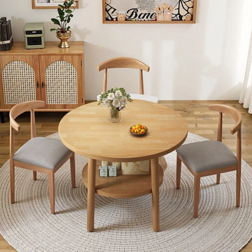 実木製ダイニングテーブルセット - コンパクトな小型住宅に最適!4脚付き長方形テーブル、リビングルームにもぴったり。収納スペース付きで、機能性とデザインを両立した食卓をお楽しみください。
