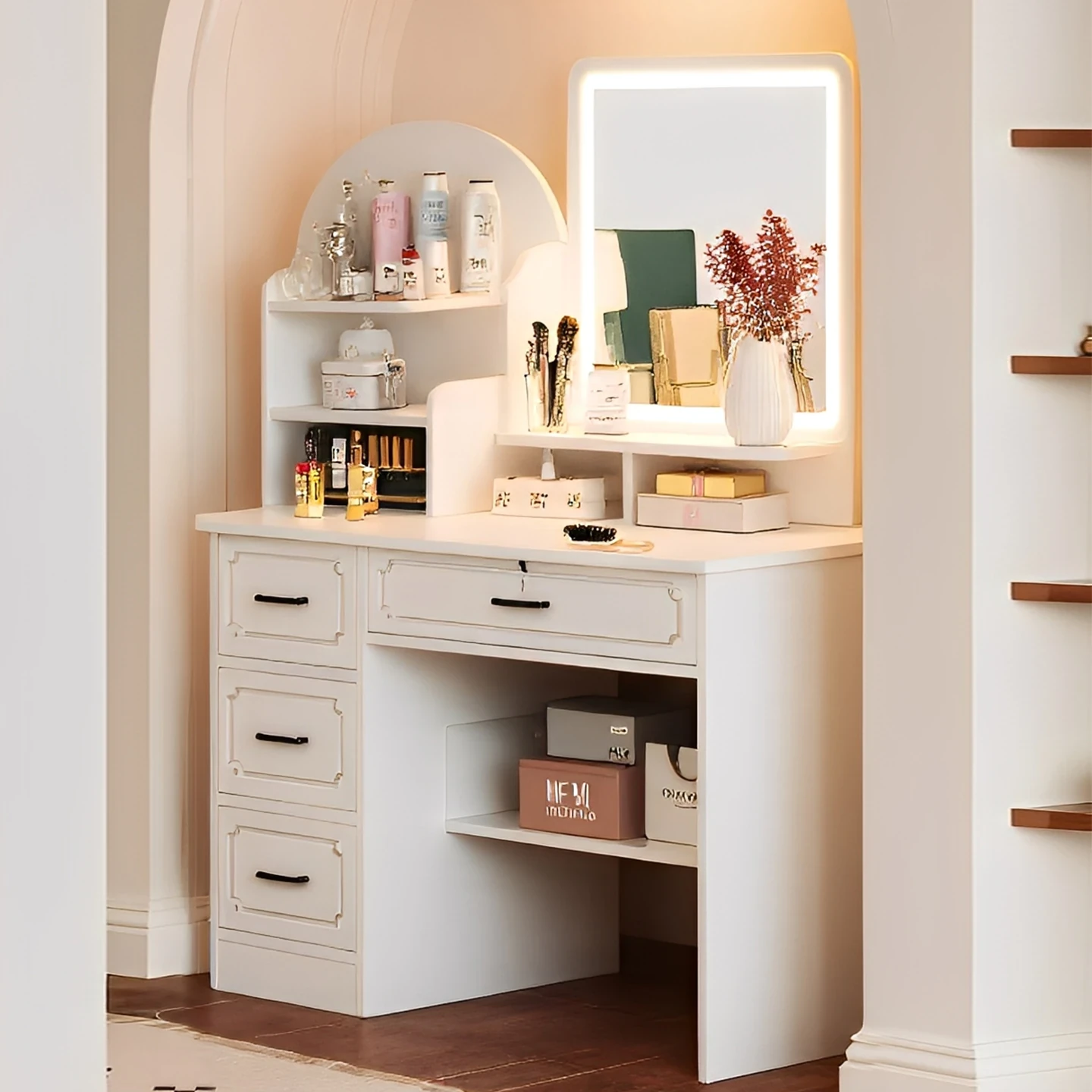 Compact Modern Vanity Table for Bedroom - 2025 New Luxury Design Makeup Desk with Storage Cabinet and Drawer Combo, Perfect for Chic Spaces