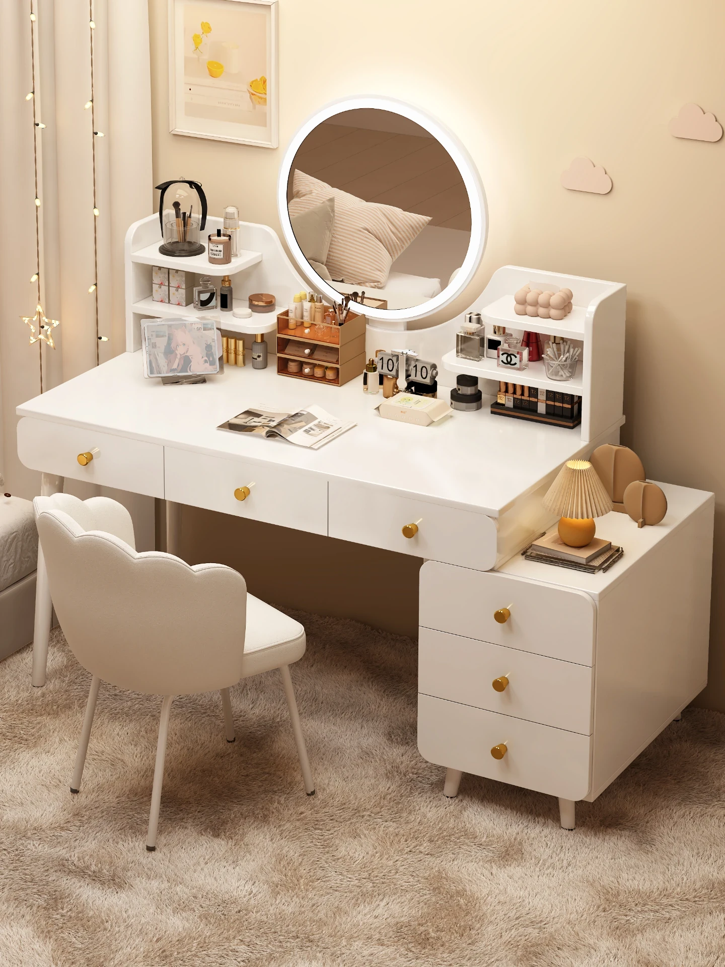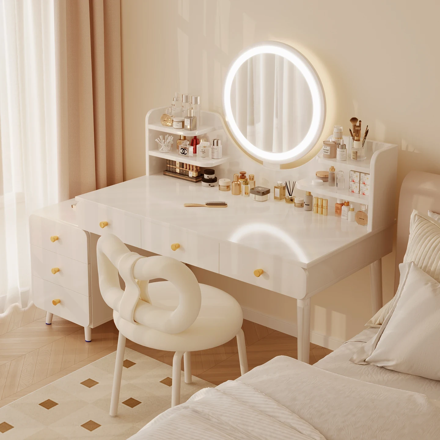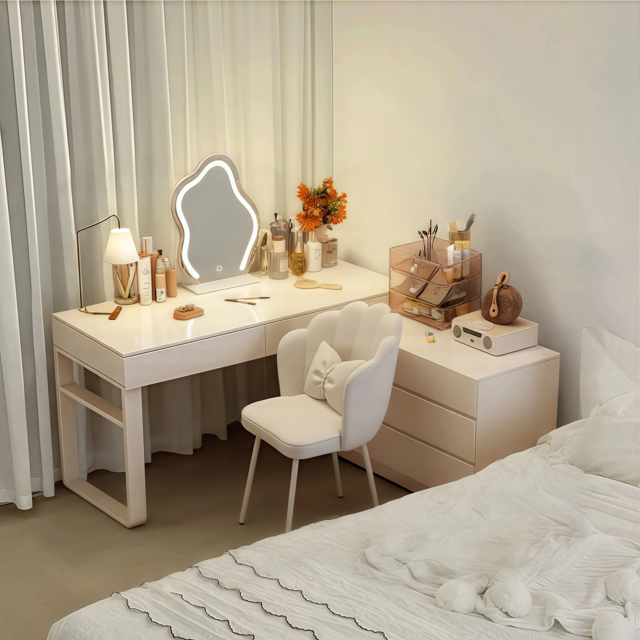 2025 New Cream-Style Makeup Vanity for Small Bedrooms - Modern Minimalist Dresser and Storage Cabinet with Integrated Mirror