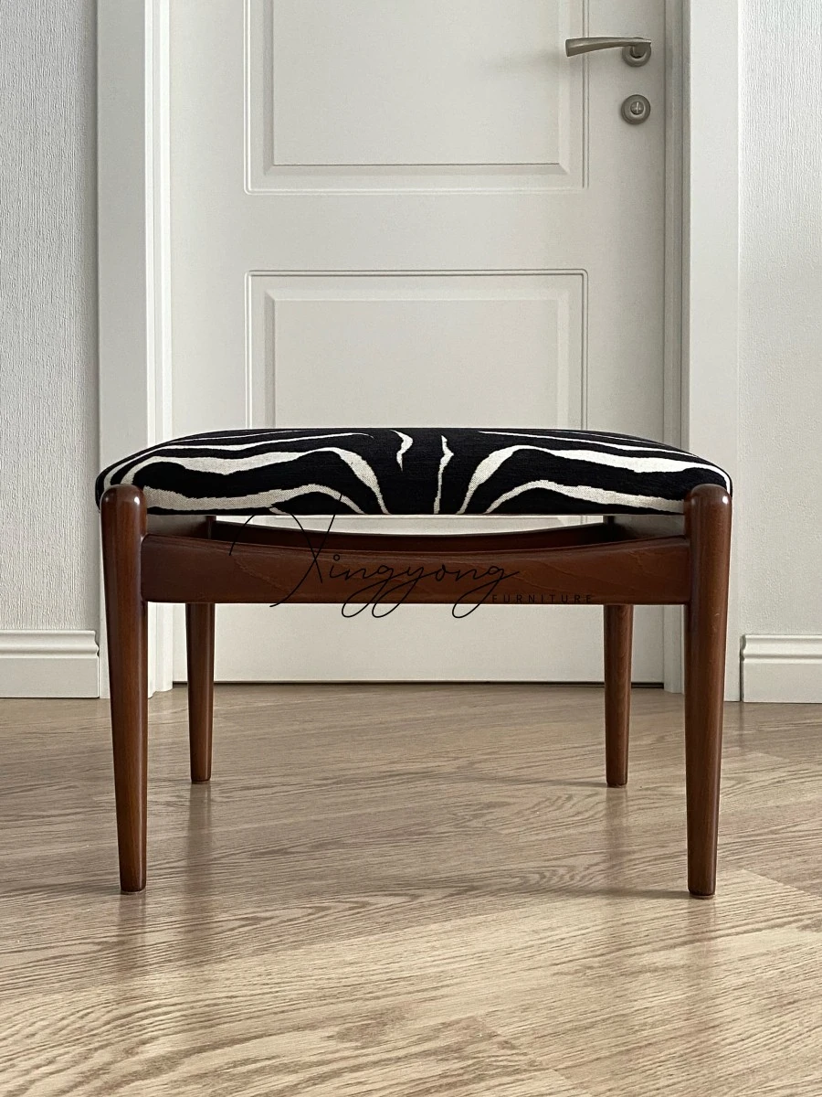 Vintage Solid Wood Makeup Stool with Zebra Print Fabric – Stylish Shoe Bench and Ottoman for Home, Offering a Touch of Luxury and Minimalist Design.