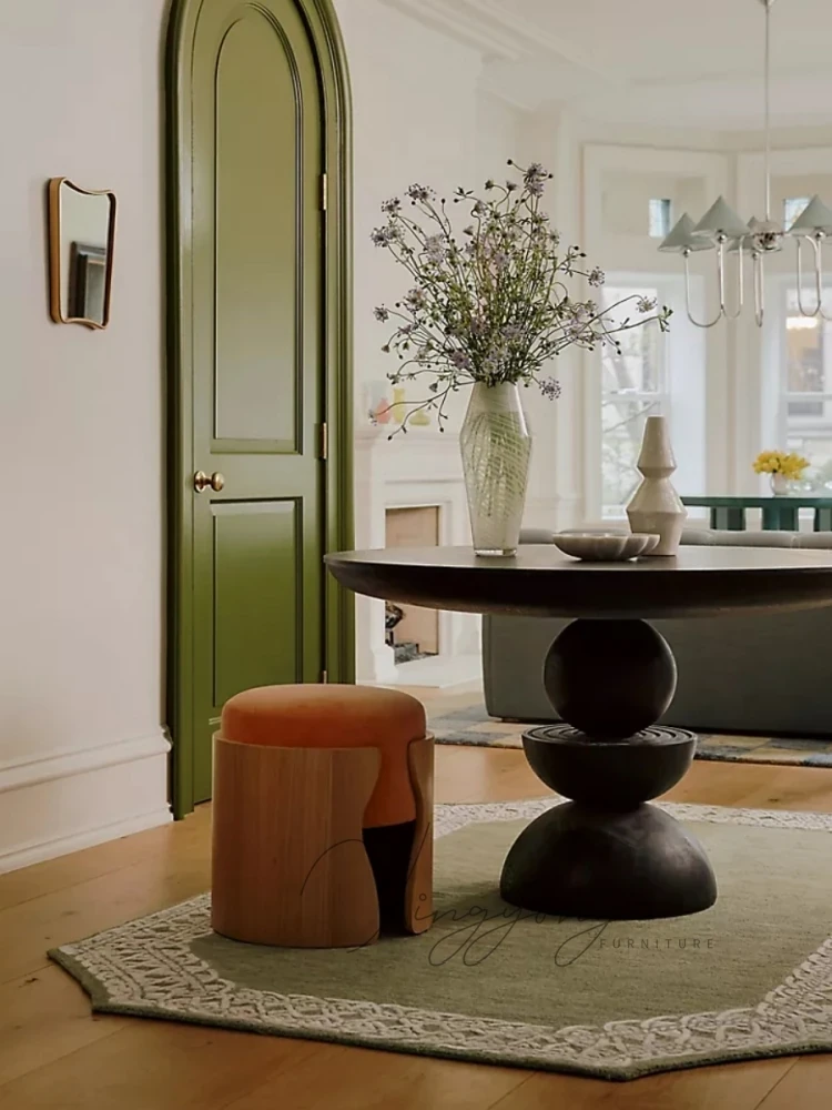 Vintage Minimalist Solid Wood Vanity Stool - Perfect for Small Spaces, Retro Round Low Stool for Living Room Entryway, Simple and Elegant Design
