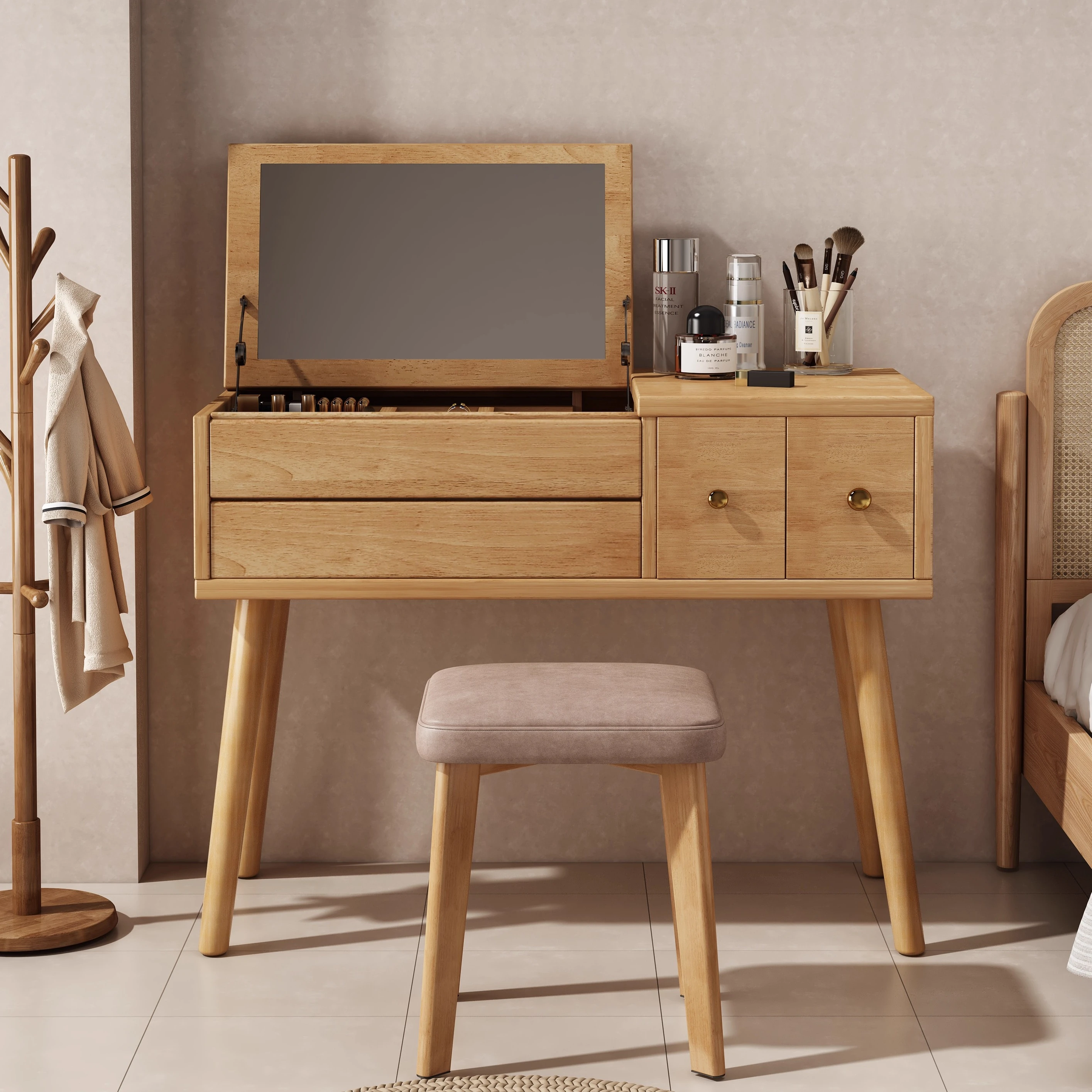 2025 New Arrivals: Solid Wood Vanity Table for Small Spaces - Flip Top Design, Minimalist Style, Perfect for Bedroom Storage and Makeup Needs