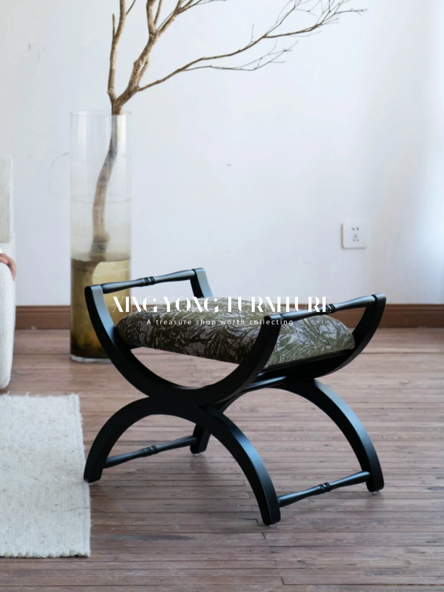 Vintage Solid Wood Makeup Stool - Designer Style, Perfect for Bedroom and Living Room, Versatile Dressing Table Seat and Shoe Changing Bench for Home Use