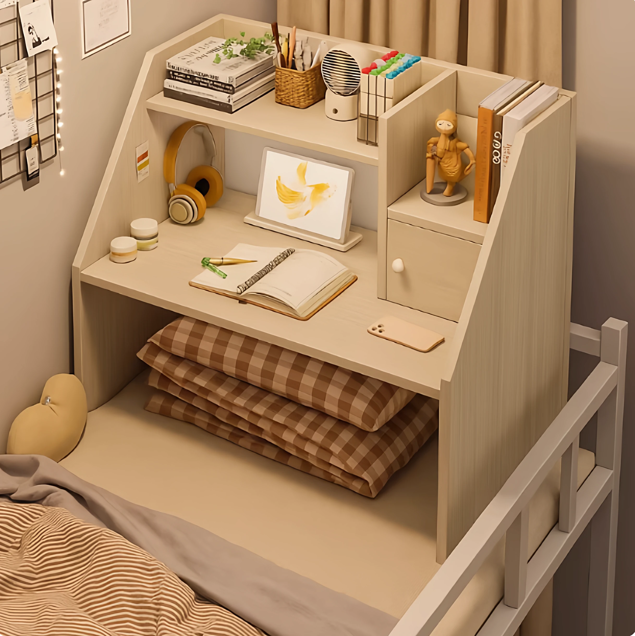 大学生必見!上下铺対応のベッドサイドテーブル、宿舎の必需品!コンパクトで収納力抜群の学習デスクとラックが一体化!スマートな寝室を実現し、勉強も快適に!