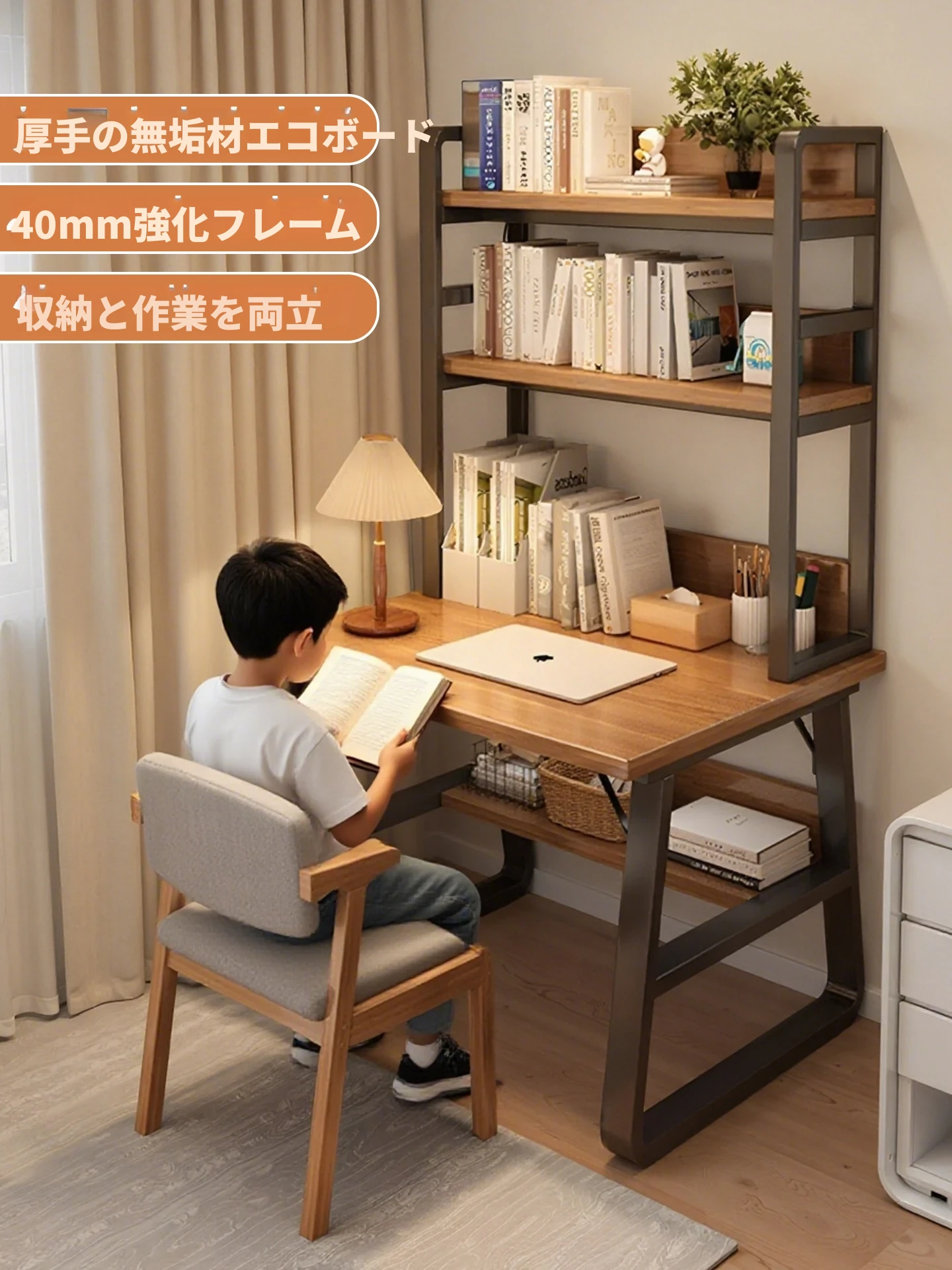 実木製のデスク&本棚一体型!学生にも最適なシンプルでスタイリッシュな学習机。自宅や寝室での勉強、パソコン作業に最適なコンパクトデザイン。快適な作業環境を手に入れよう!
