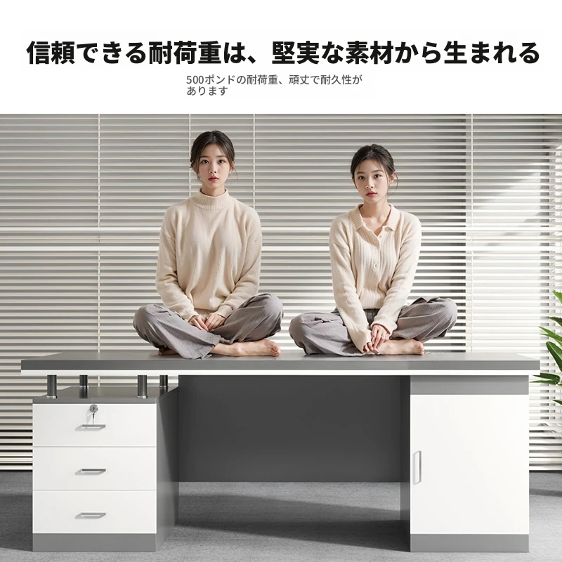引き出し付きデスク|シンプルでモダンなデザインのパソコンデスク|家庭用・オフィス用に最適|快適な作業空間を実現する社員・管理者用デスクセット