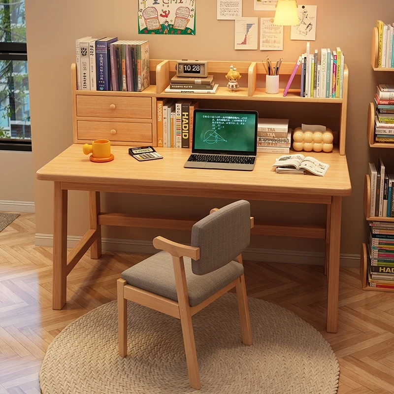 高品質の無垢材使用!学生向け多機能デスク&ブックシェルフ一体型。小スペースにも最適なコンパクト設計。寝室やオフィスでの学習や仕事にぴったりなスタイリッシュなデスク!