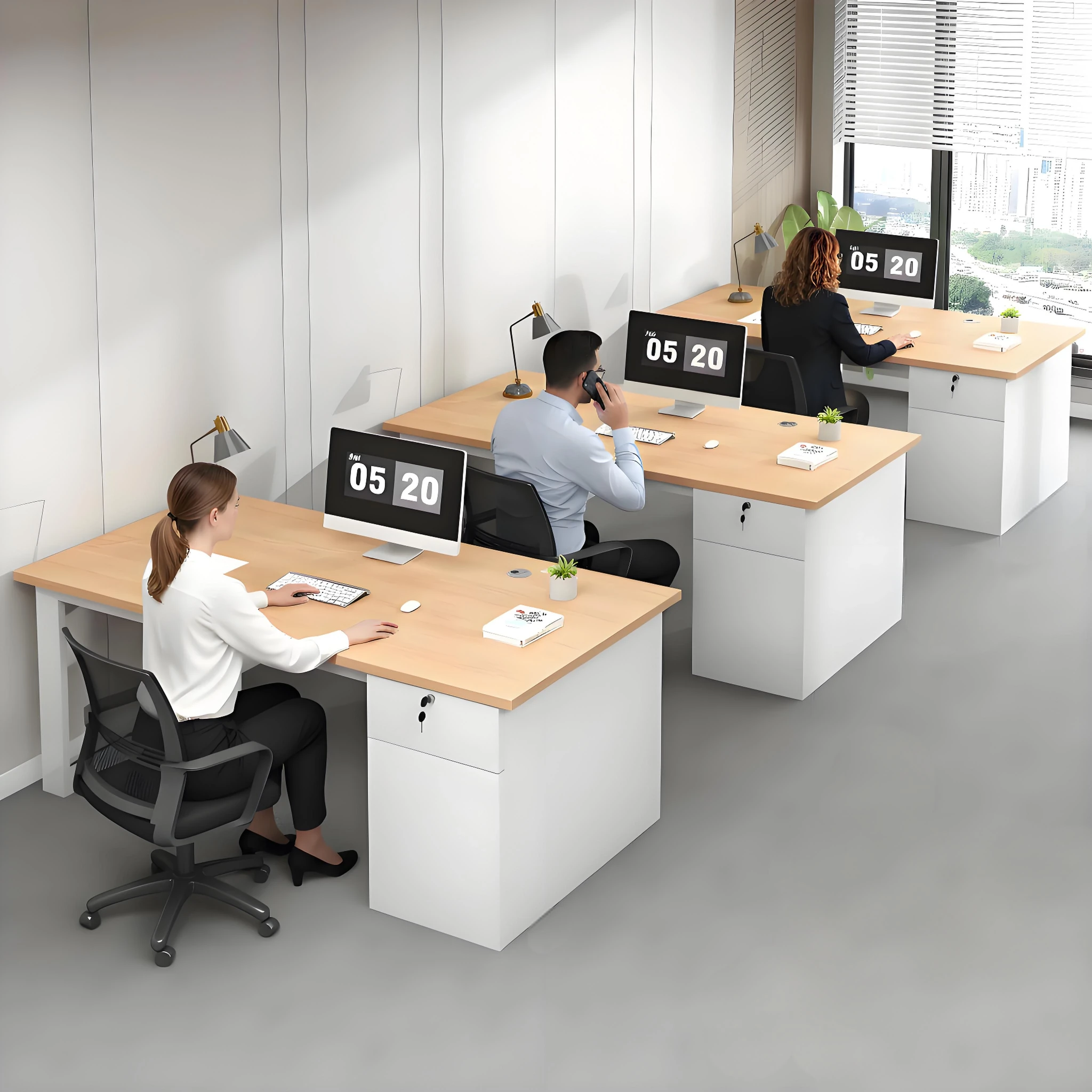 シンプルでモダンなオフィスデスクセット!デュアルタイプのパソコンデスク、快適な社員用デスクとして最適。家庭用にもぴったりなスタイリッシュなデザインで、作業効率をアップさせるアイテムです。