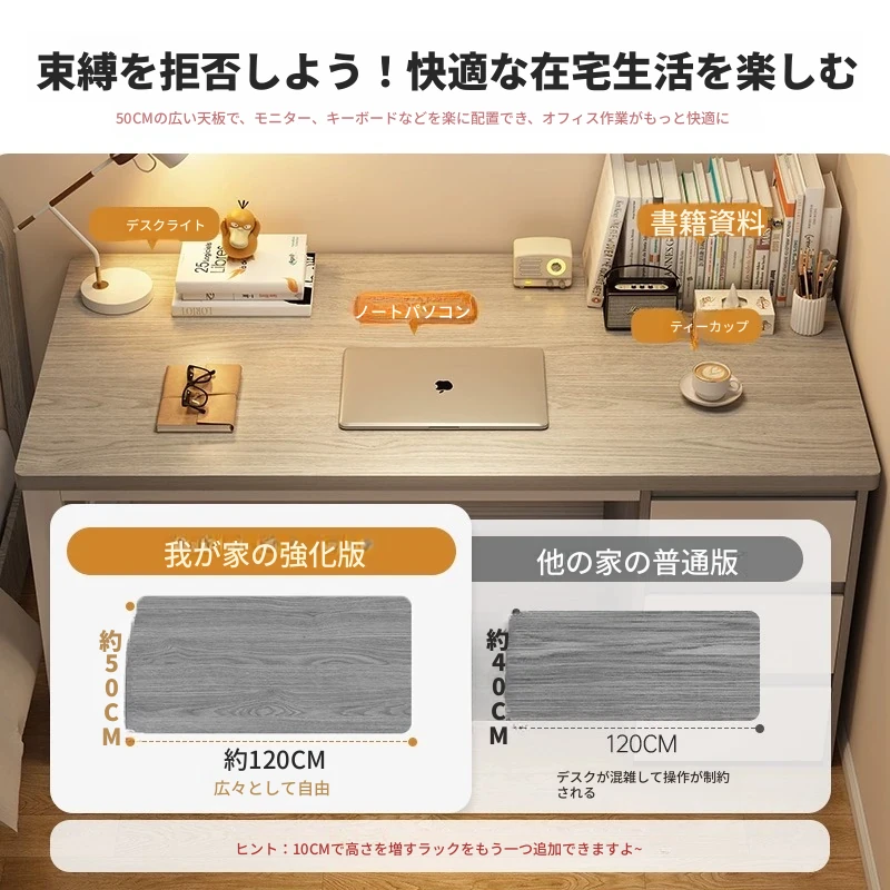 デスク一体型のスタイリッシュな書斎用デスク|抽斗付きで収納力抜群!学習や作業に最適なコンパクトデザイン。居心地の良い自宅オフィスを実現します。