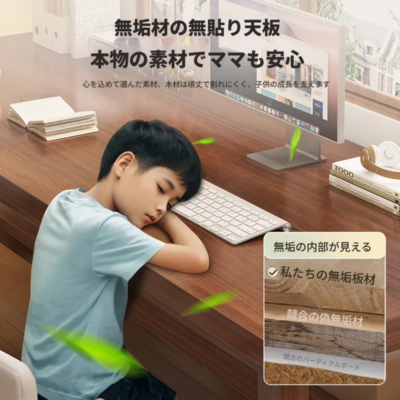 中小学生向け!安全設計の丸みを帯びた学習机と椅子セット - 自宅や塾での勉強を快適にサポート!勉強に集中できる最適な環境を提供します。