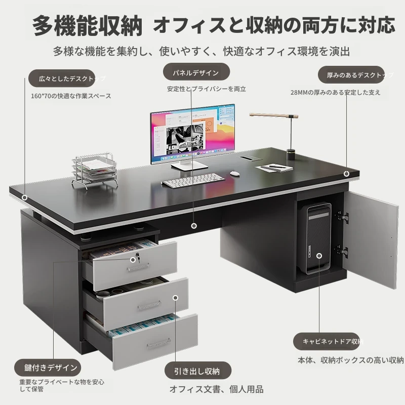 シンプルで洗練されたオフィスデスク - 引き出し付きの2025年新作エグゼクティブデスク。快適な作業環境を実現し、リーダーにふさわしいスタイリッシュなデザイン。あなたのオフィスを格上げする一品です!