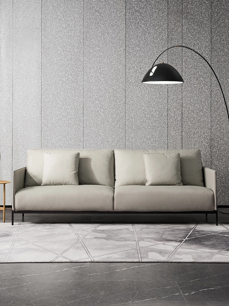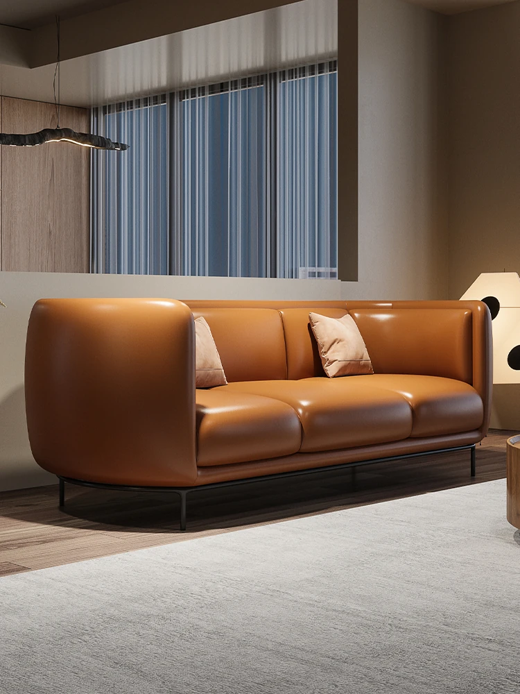 Modern Minimalist Retro Genuine Leather Sofa for Small Spaces - Three-Seat Top Grain Cowhide Sofa with Straight Lines, Italian Design for Elegant Living Room Décor.