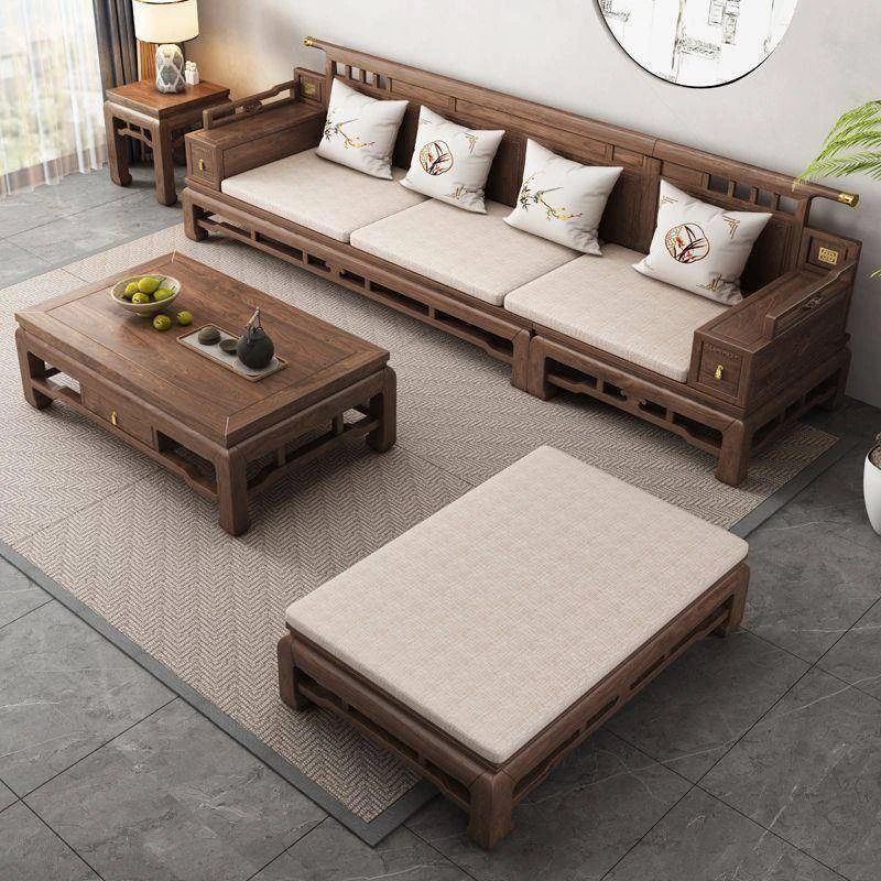 Classic Walnut Solid Wood Sofa Set - Versatile for Winter and Summer, Perfect for Villas and Spacious Living Rooms, Embrace National Style Furniture in Your Home