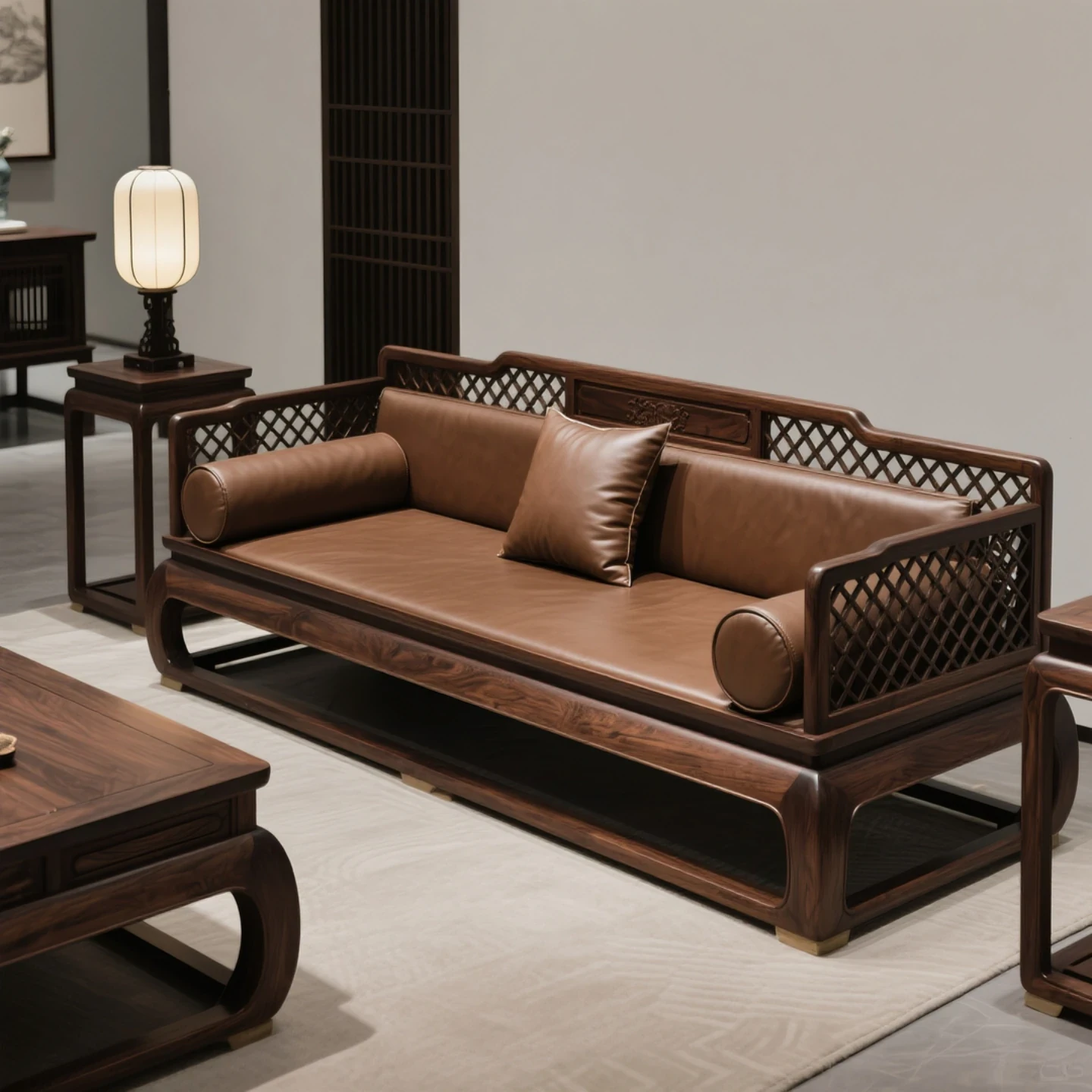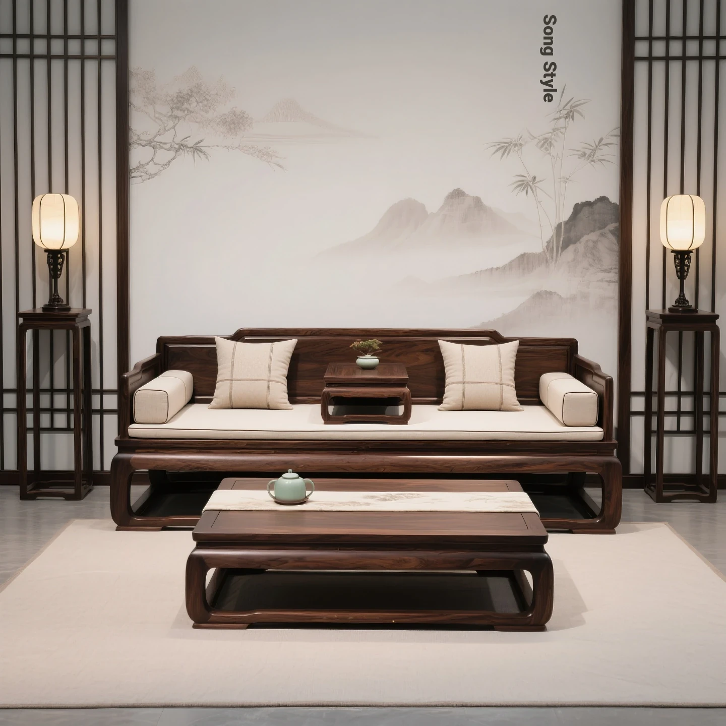 New Chinese Style Luohan Bed - Imported North American Black Walnut Wood - Solid Wood Sofa for All Room Sizes - Song Aesthetics Sofa and Daybed