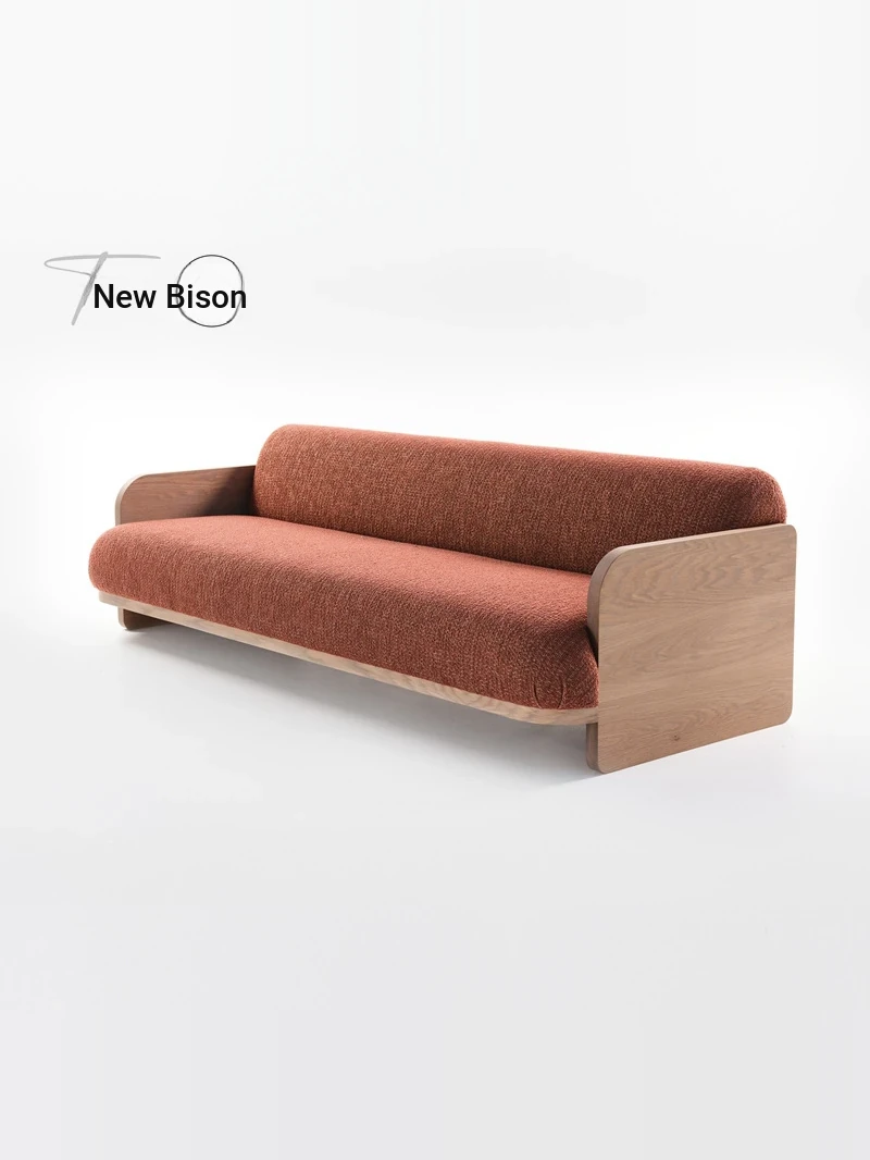Nordic Minimalist Solid Wood Three-Seater Sofa Set - Designer Sample Room for Home, Airbnb, and Lounge with Wabi-Sabi Aesthetic