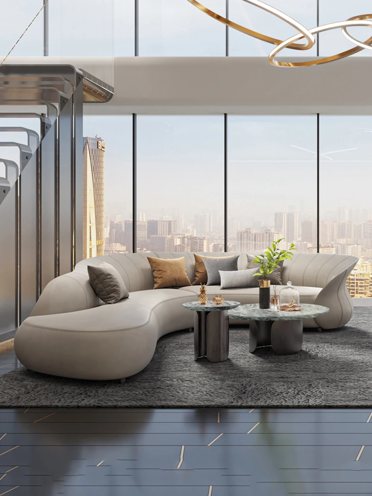 Ms Original Verona Villa Large-Size Angled Unique French Cream Style Semi-Circular Light Luxury Curved Sofa - Perfect for Elegant Living Spaces