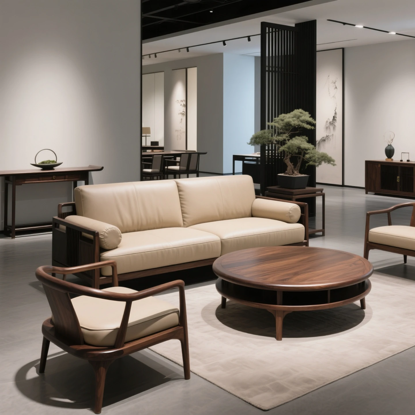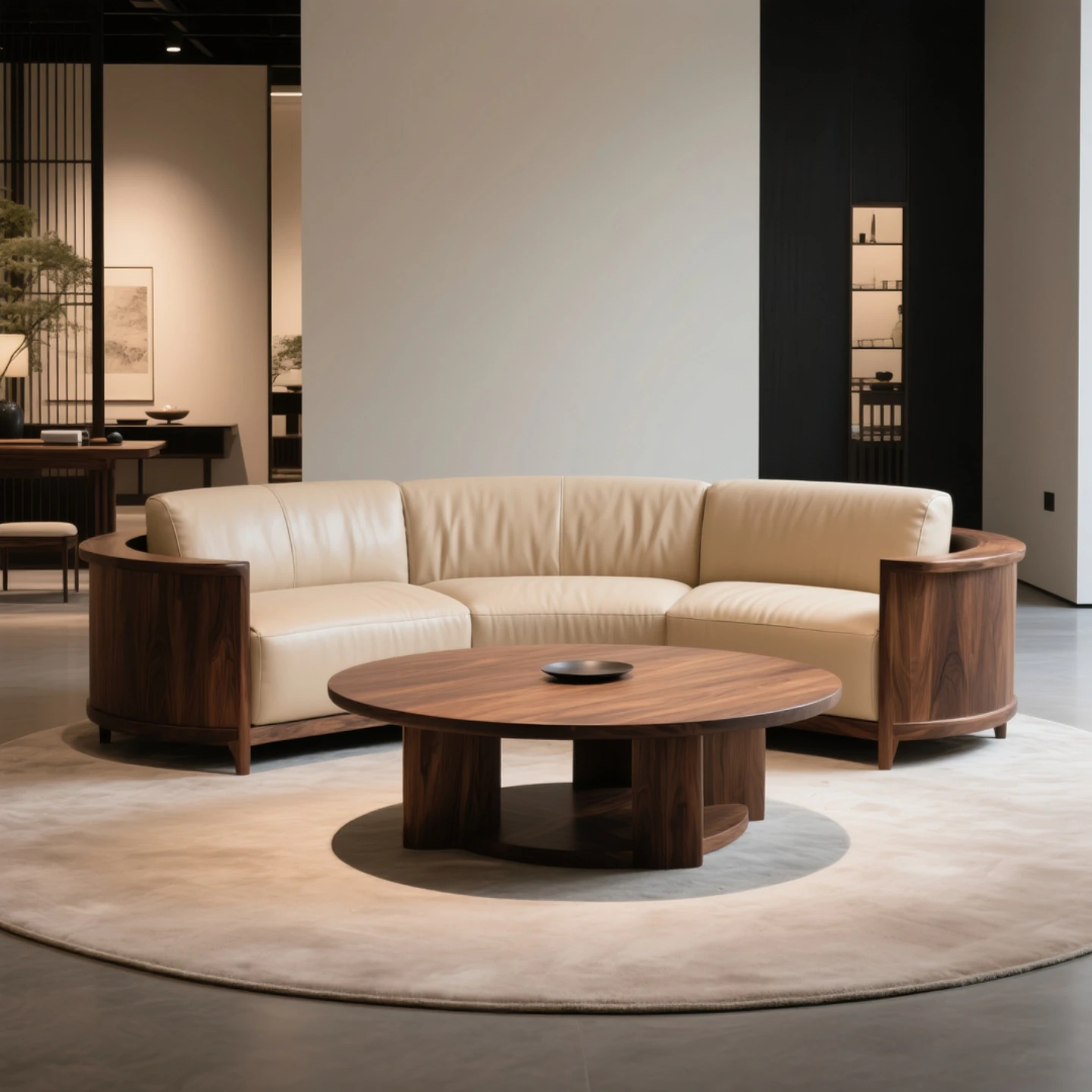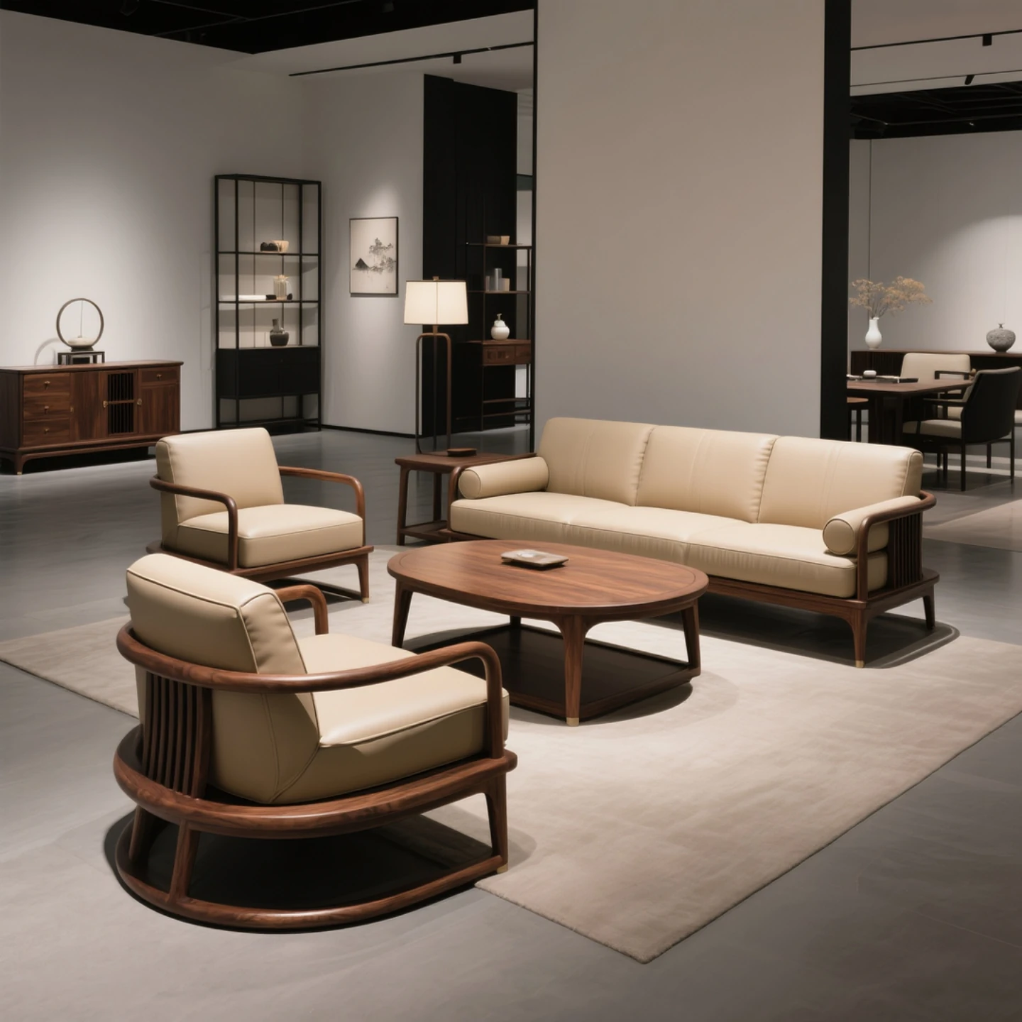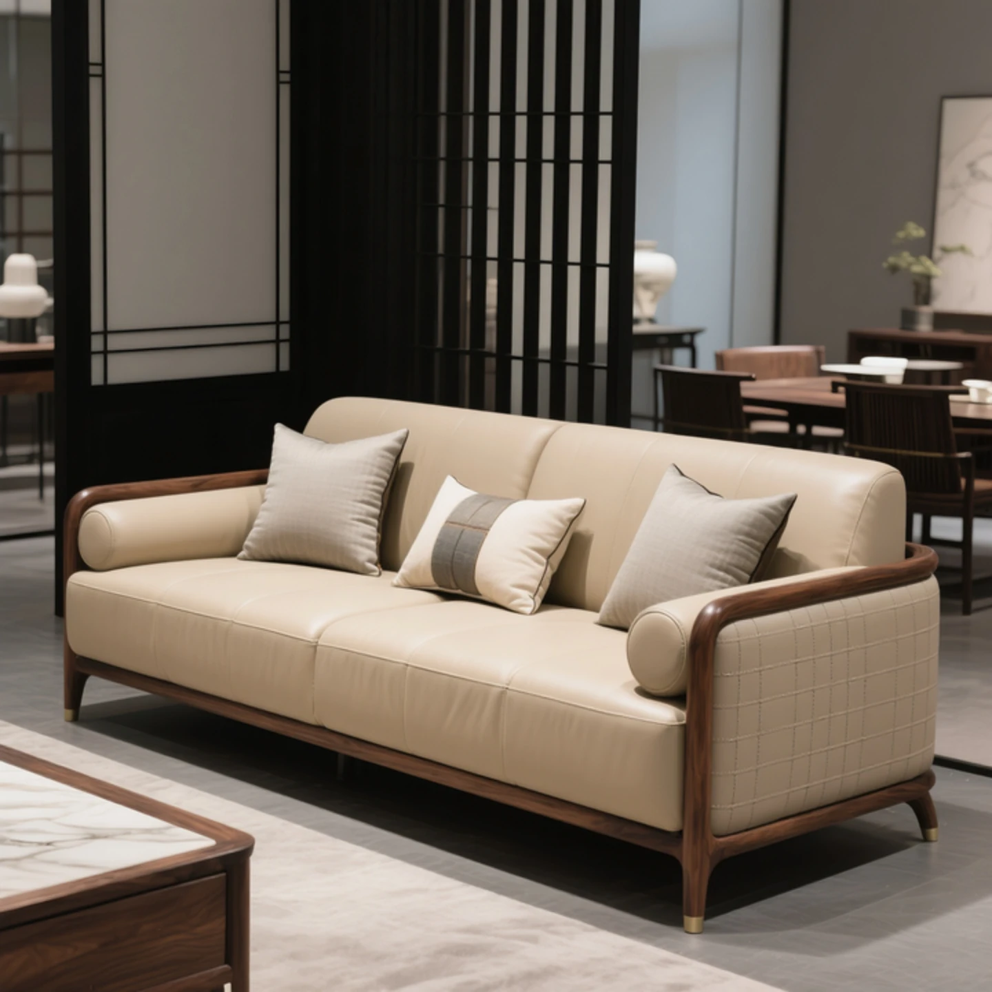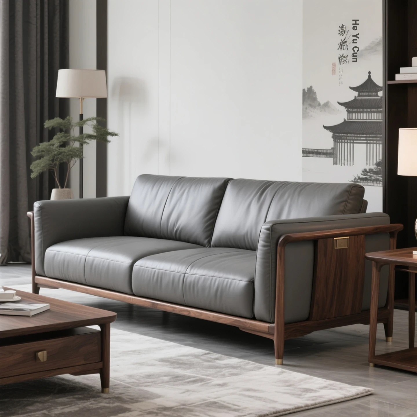 New Chinese Style North American Black Walnut Sofa - Elegant Song Aesthetics with Solid Wood and Genuine Leather for Office and Living Room - Wabi-Sabi Inspired Furniture