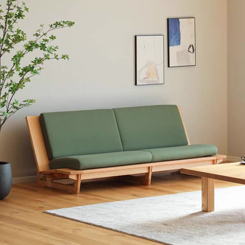 Nordic Minimalist Solid Wood Sofa - Japanese Style Cherry Wood Three-Seater Couch for Small Living Rooms, Armless Fabric Sofa Perfect for Cozy Spaces