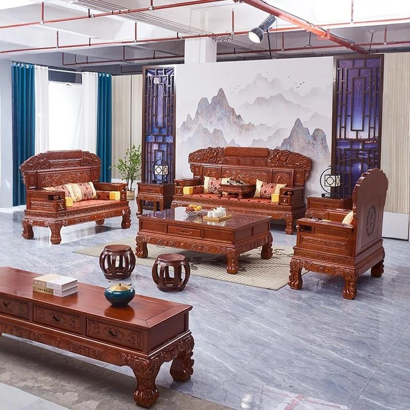 Classic Chinese Ming and Qing Style Solid Wood Sofa Set - Antique Carved Rosewood Living Room Furniture, Complete Collection for a Timeless Elegance.