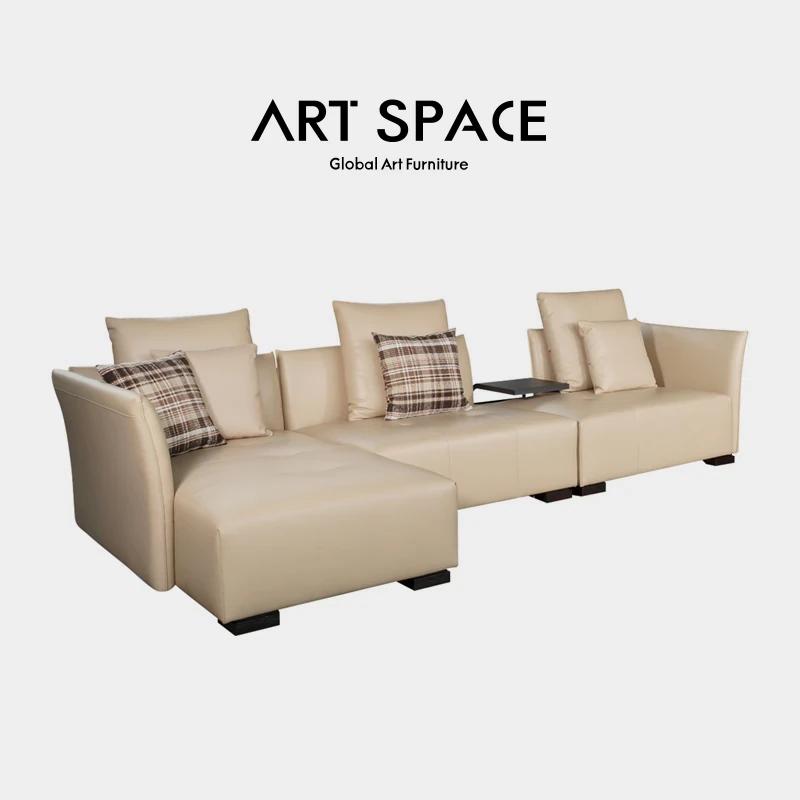 AS Selected Natpro Italian Minimalist Genuine Leather Sofa Set - Modern Compact Corner Sofa for Small Living Rooms
