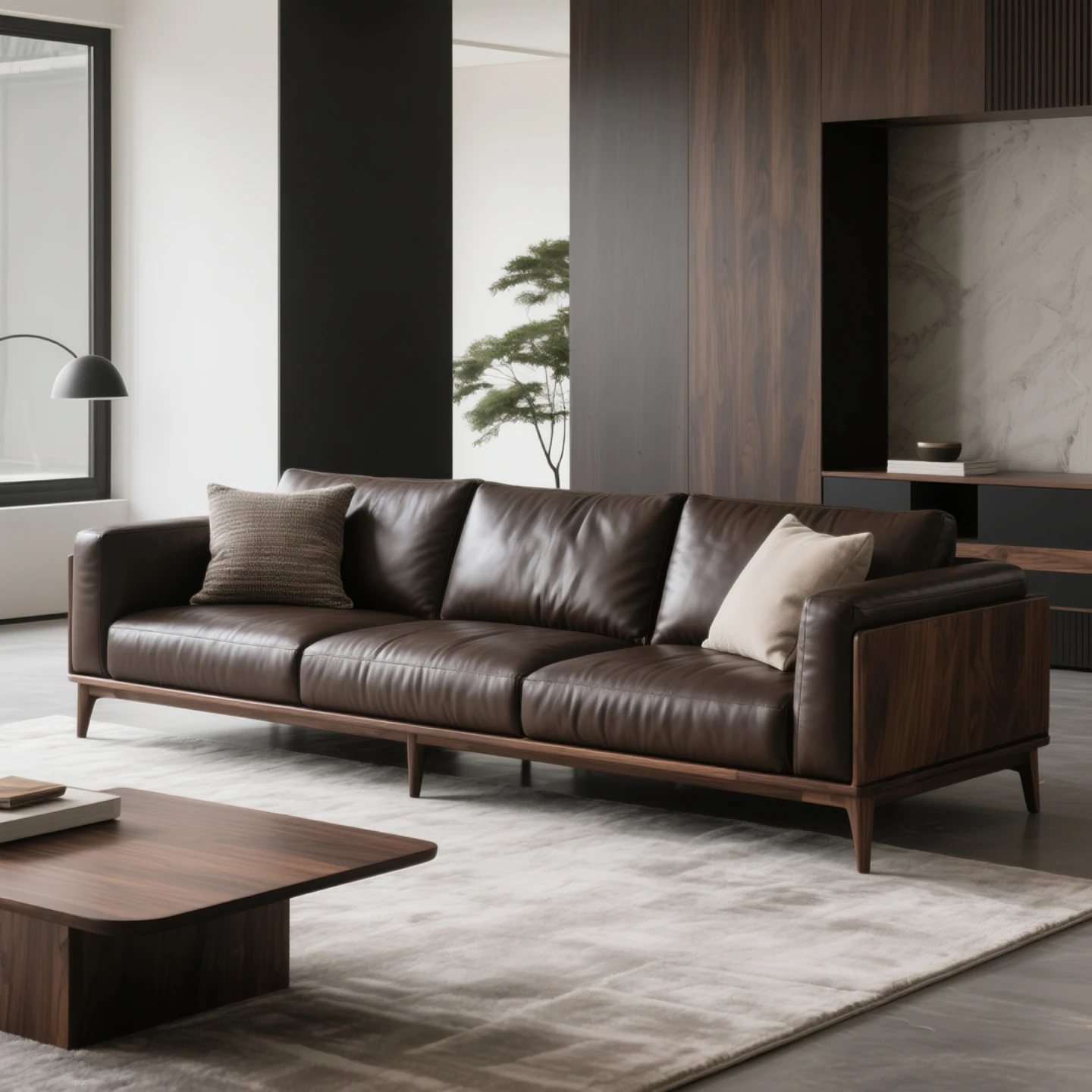 Modern Minimalist North American Black Walnut Sofa - New Arrival Solid Wood Straight-Line Design, Genuine Leather, Luxurious High-End Living Room Furniture
