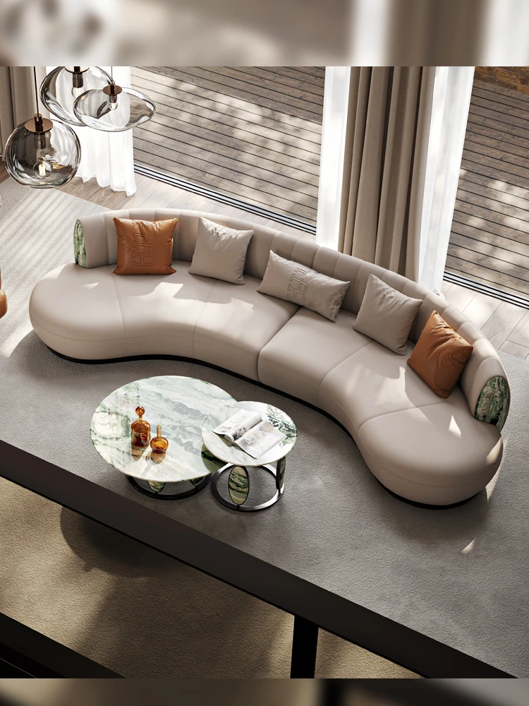 Ms Original/Coin Italian Designer Villa-Style Luxury High-End Curved Leather Sofa – Embrace Elegant French Design for Your Spacious Living Room