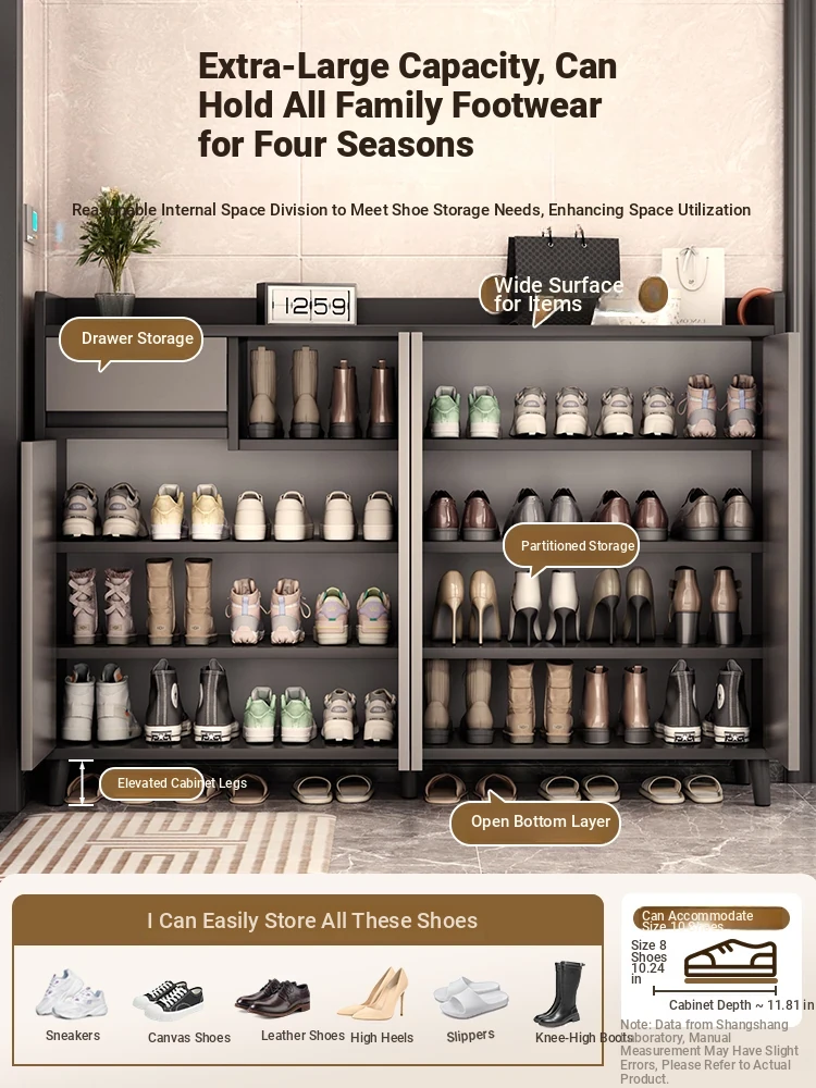 Large Capacity Corridor Shoe Cabinet - Versatile Entryway Storage Unit with Wall-Mounted Design for Home Organization - Stylish and Functional Shoe Rack for Your Entryway!