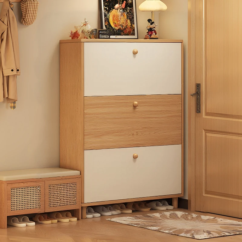 2025 New Solid Wood Flip Shoe Cabinet - Slim, Wall-Mounted Entryway Storage Solution for Home, Perfect for Narrow Spaces, Stylish and Functional Shoe Rack