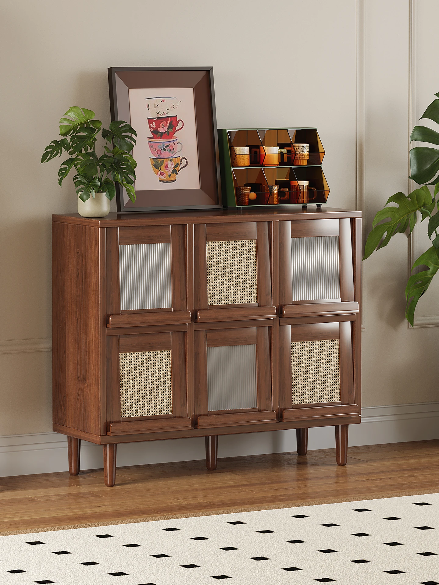 Vintage Storage Cabinet - Floor-standing Organizer for Living Room, Japanese-style Sideboard, Home Rattan Cabinet, Versatile Bookshelf and Storage Solution