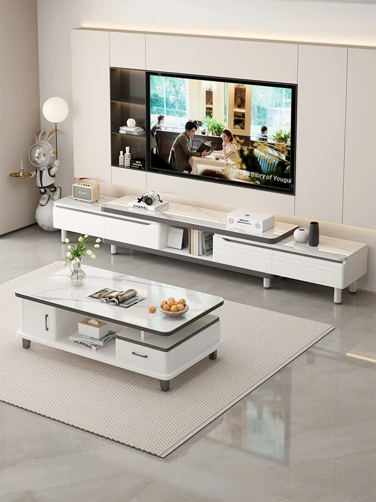 2025 New Modern Minimalist TV Stand for Small Living Rooms - Adjustable, Space-Saving Floor Unit with Sleek Rock Panel Design