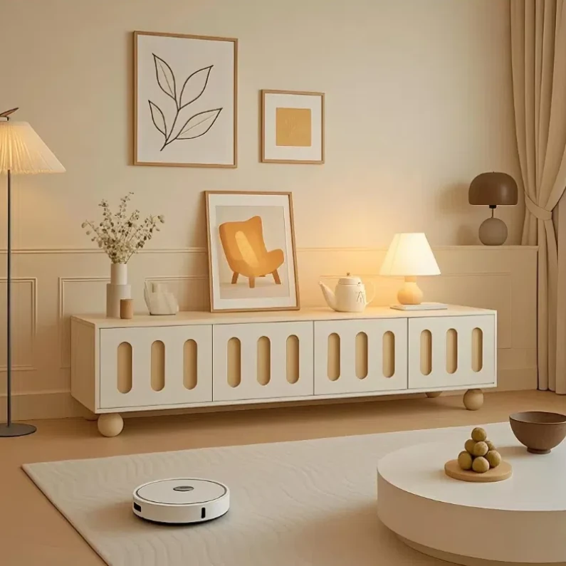 Stylish Cream-Colored TV Cabinet with Storage for Small Spaces - 2025 New Minimalist Floor TV Stand for Living Rooms