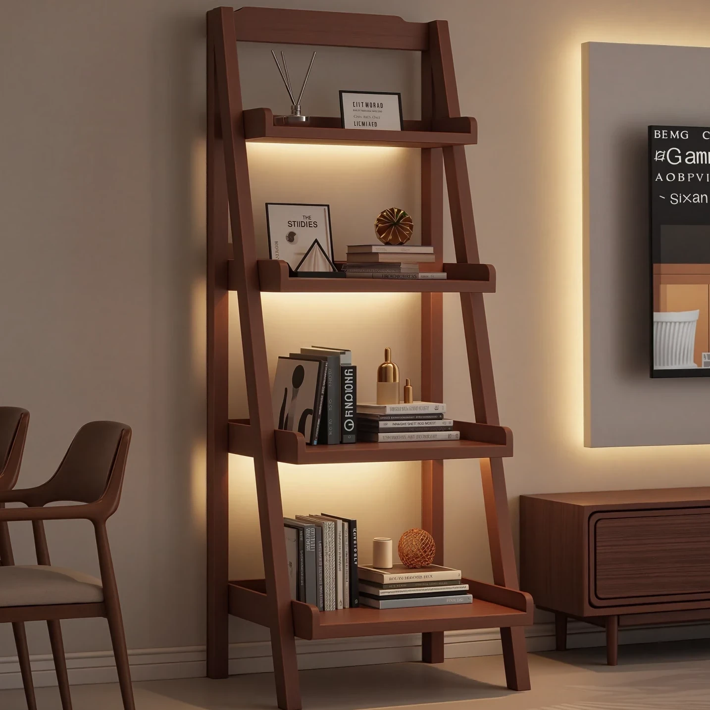Solid Wood Ladder Bookshelf - Stylish Wall-Mounted Display Rack for Living Room, Perfect beside TV Cabinet, Versatile Trapezoidal Design for Books and Decor