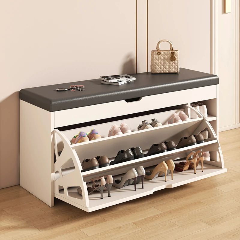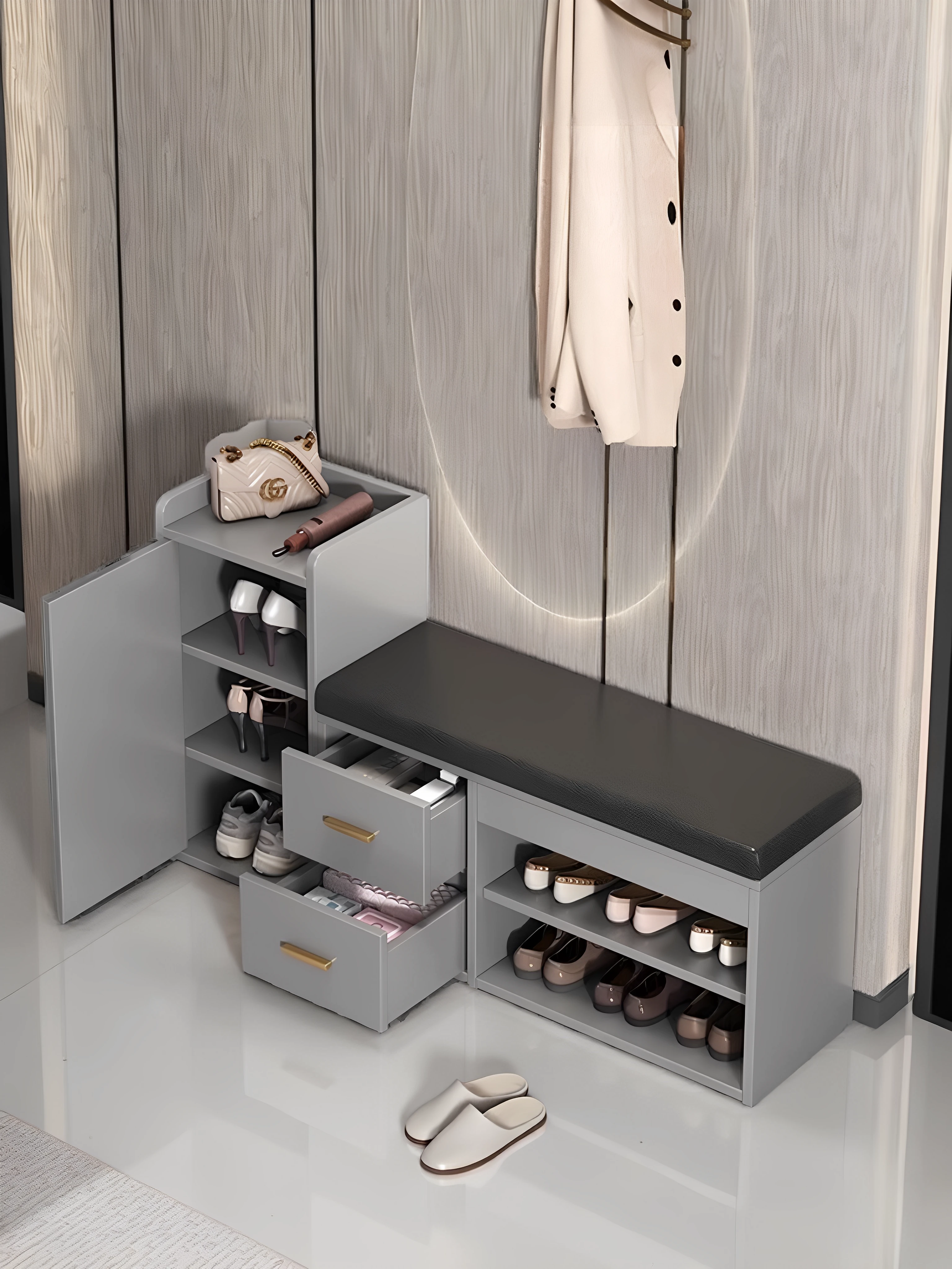Narrow Entryway Shoe Bench with Storage - Stylish and Functional Foldable Shoe Cabinet and Seat for Easy Shoe Changing at Home, Space-Saving Design for Small Entrances