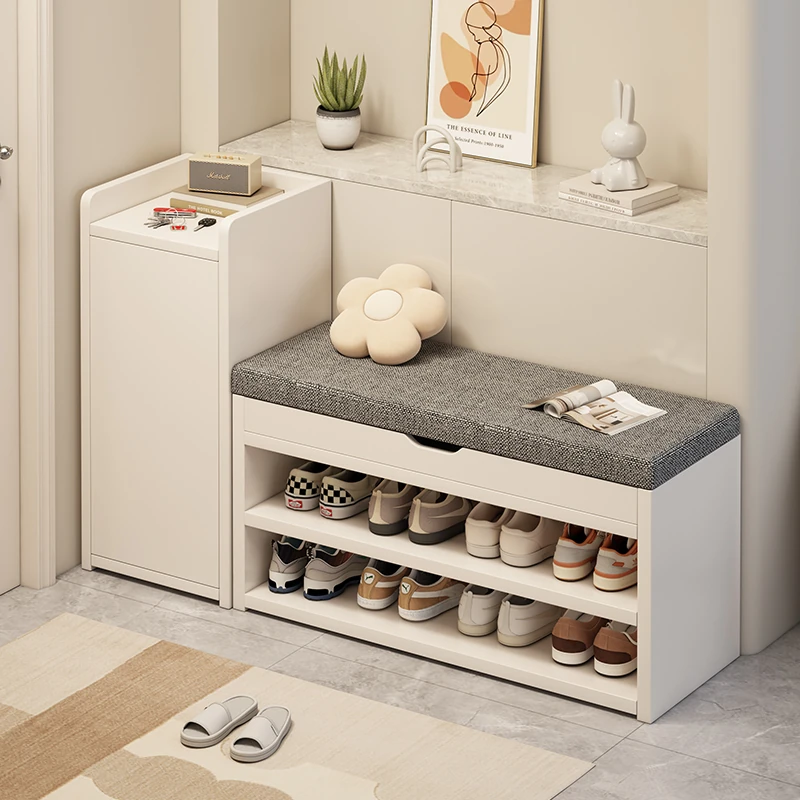 Multifunctional Entryway Shoe Bench with Soft Cushion - Stylish Storage Shoe Rack and Seat for Home, Perfect for Hallway Organization and Easy Shoe Changing