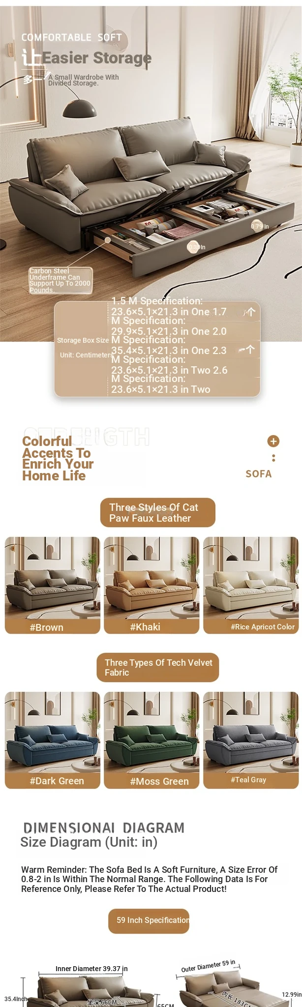 2023 Multifunctional Foldable Sofa Bed - Space-Saving Design for Small Apartments and Living Rooms, Versatile Pull-Out and Expandable Features for Ultimate Comfort and Style.