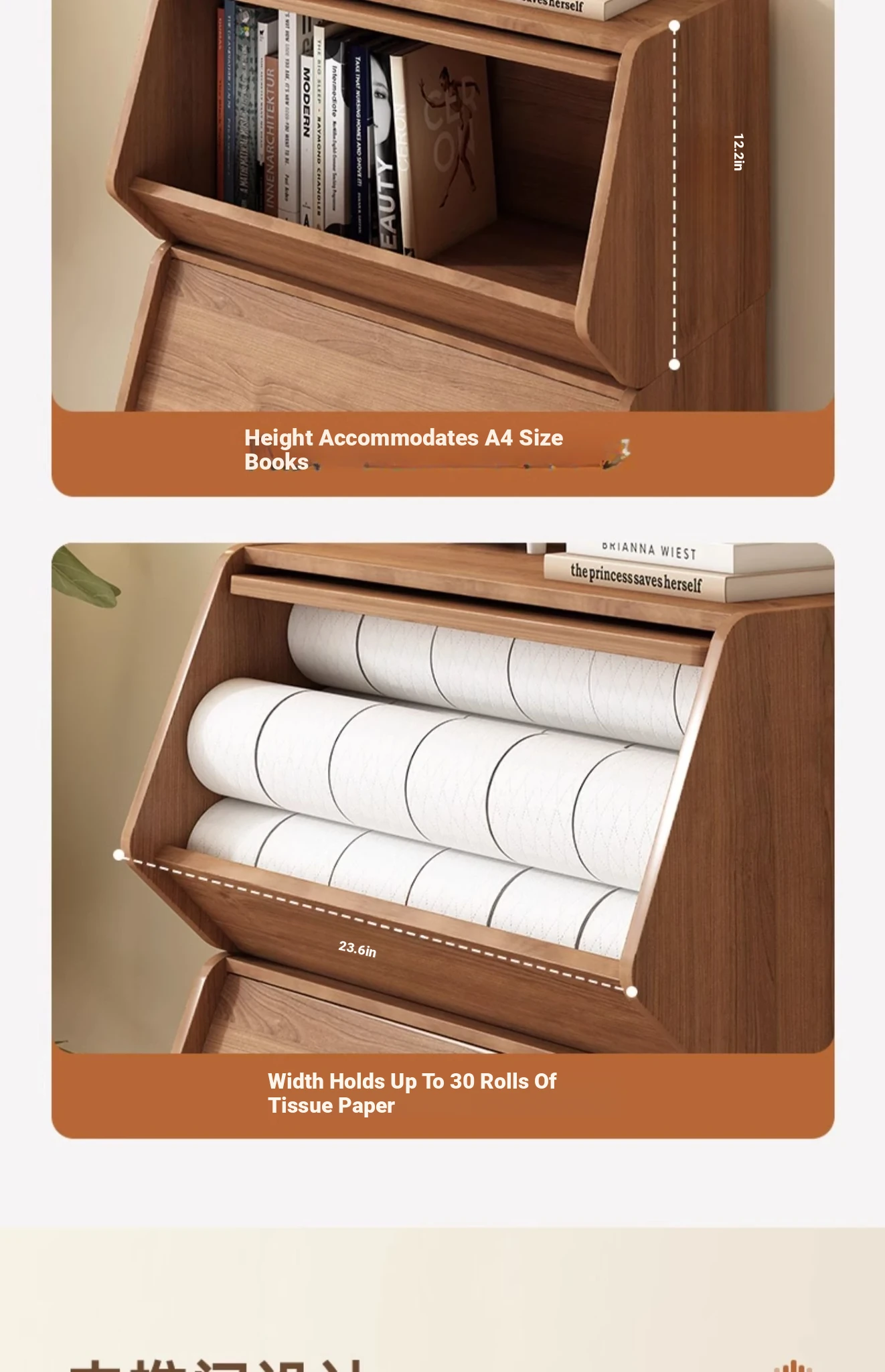 Combination-large -23.62in-hazy walnut color⭐Thickened 0.59in solid wood ecological board
