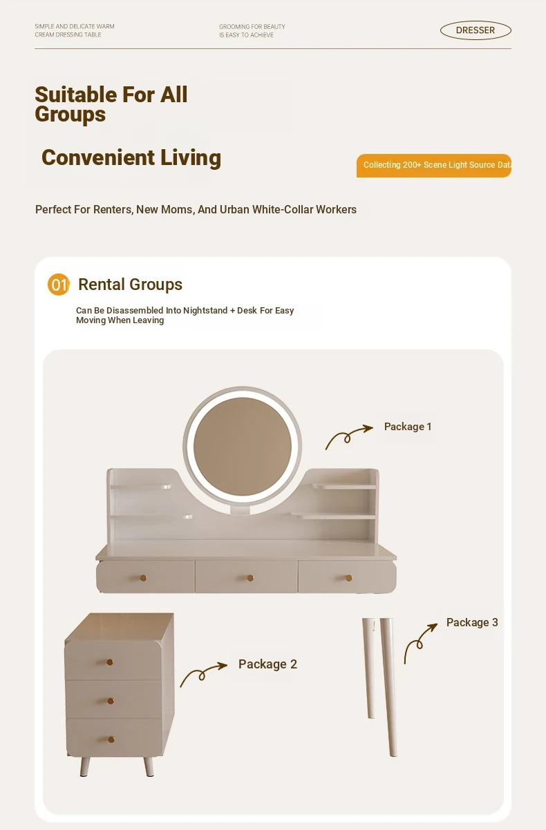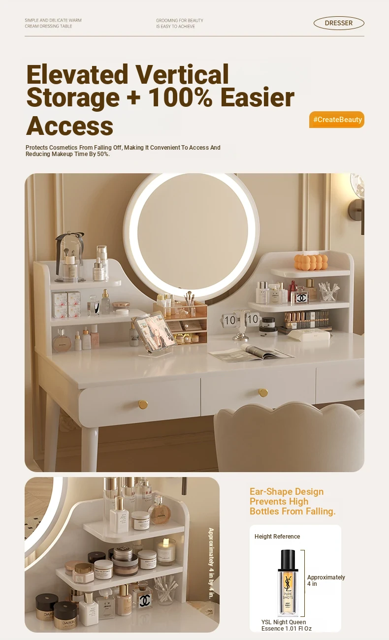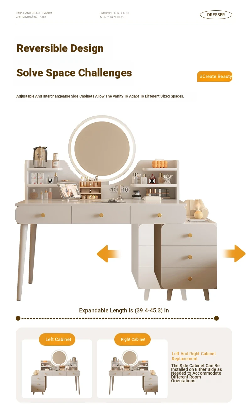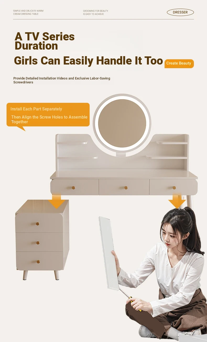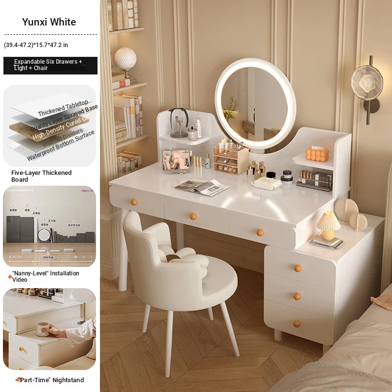 2025 New Cream-Style Integrated Makeup Vanity with Mirror - Space-Saving Mini Dressing Table and Nightstand for Small Rooms
