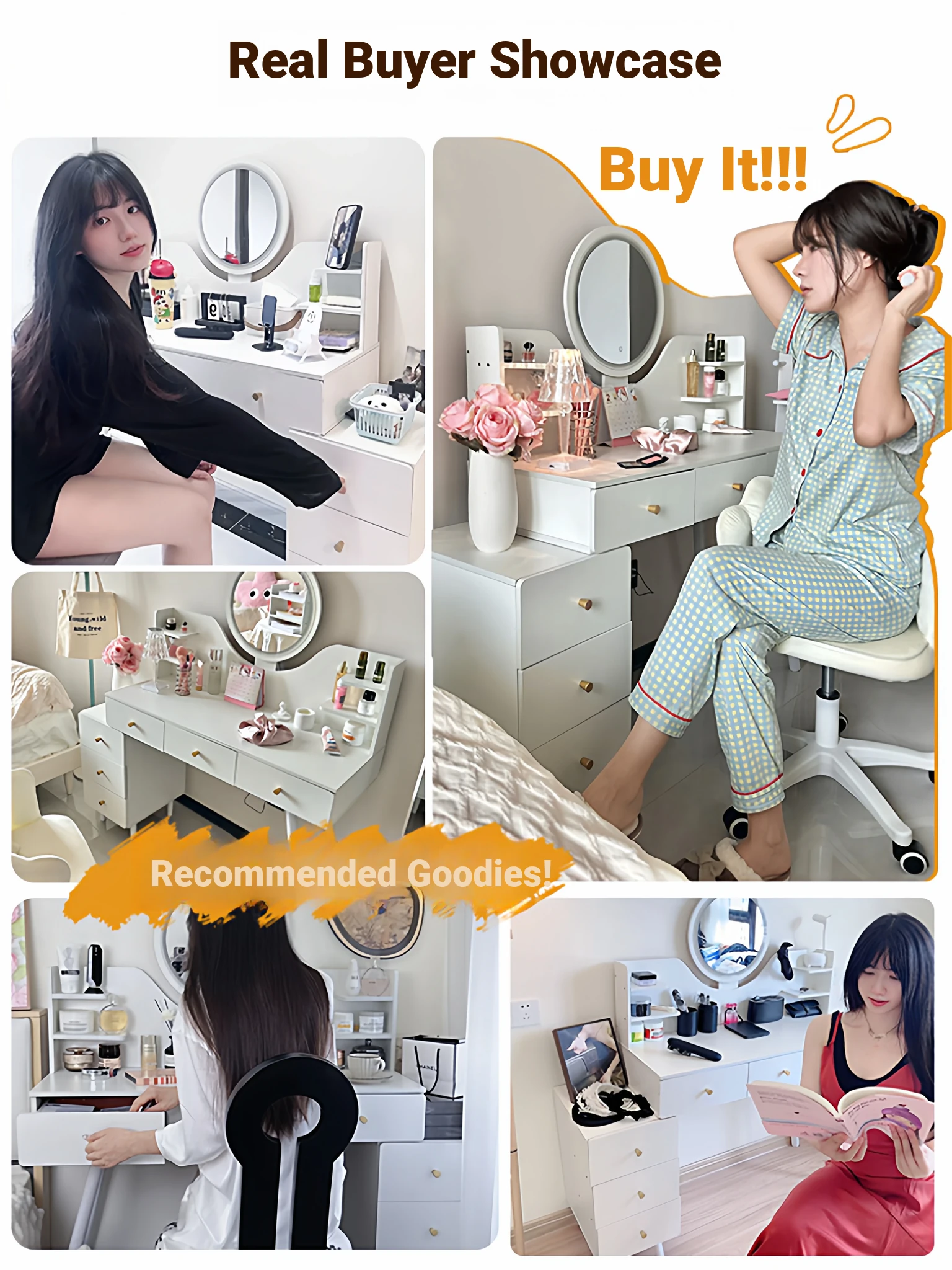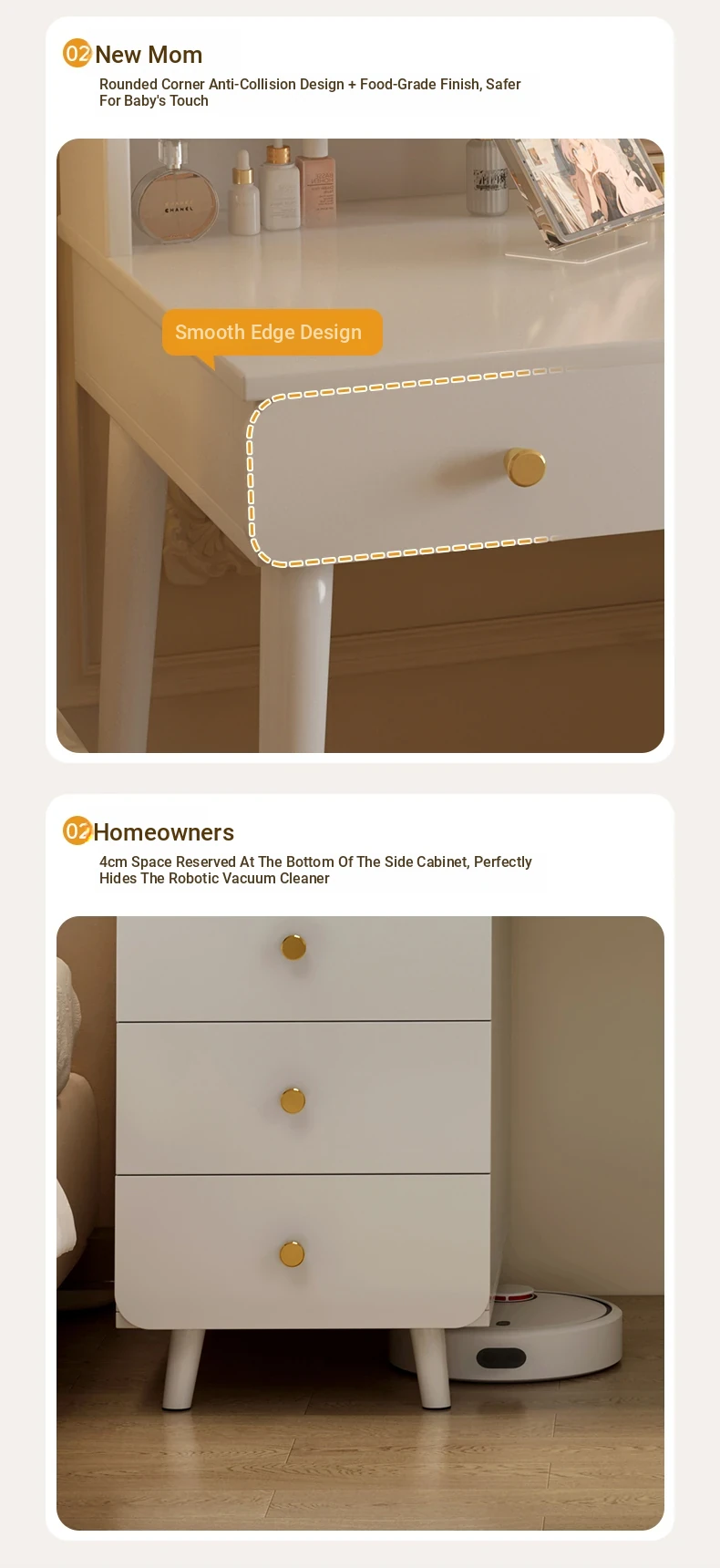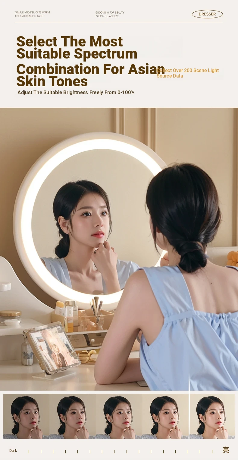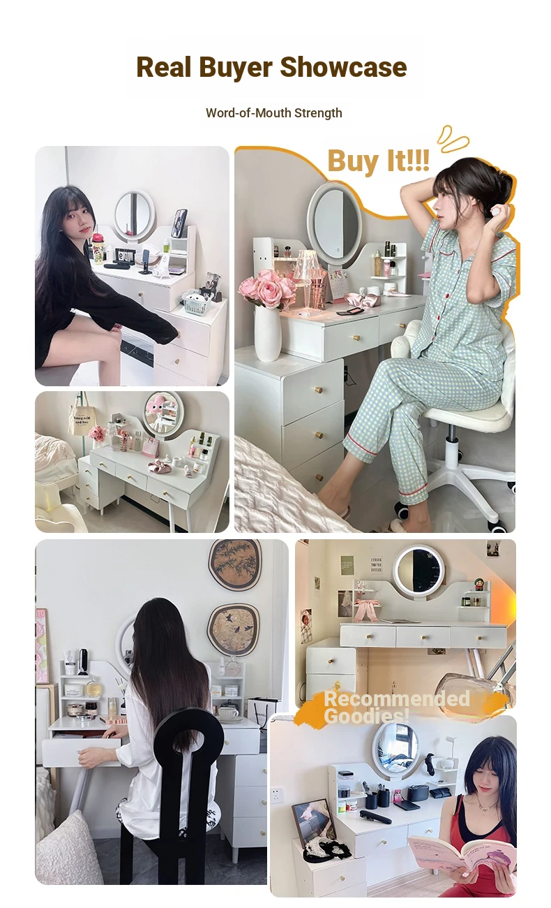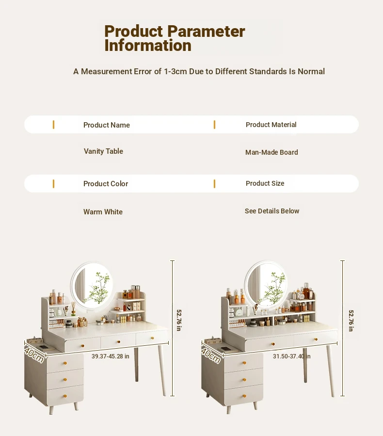 2025 New Cream-Style Integrated Makeup Vanity with Mirror - Space-Saving Mini Dressing Table and Nightstand for Small Rooms
