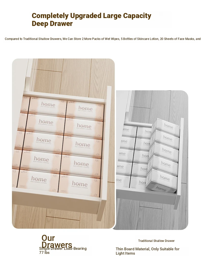 Main drawing✅[Five draw + side cabinet + LED intelligent mirror] 31.50in-37.40in Cloud Creek White,