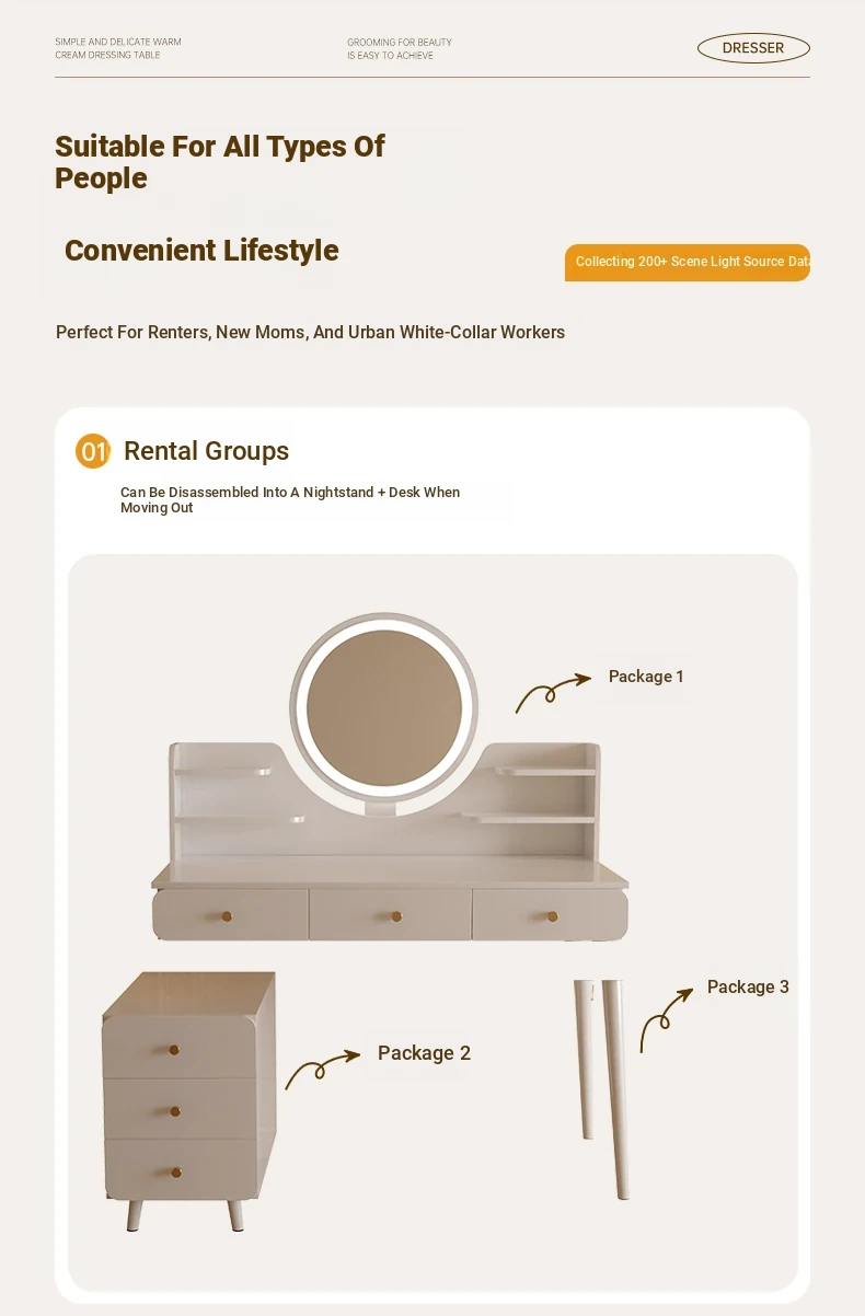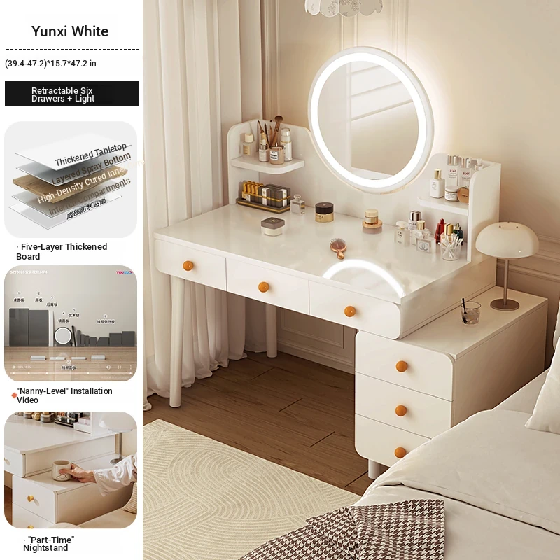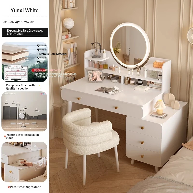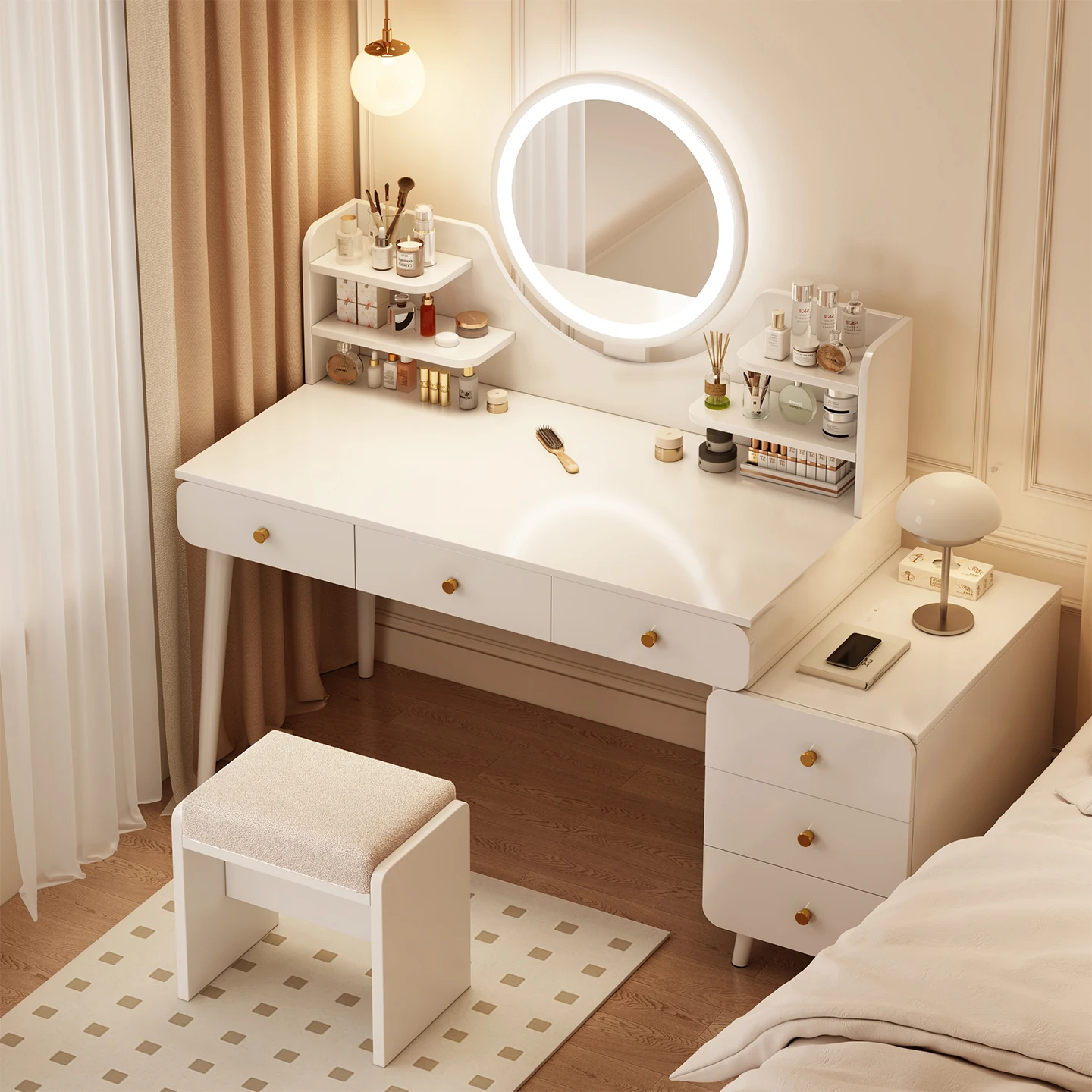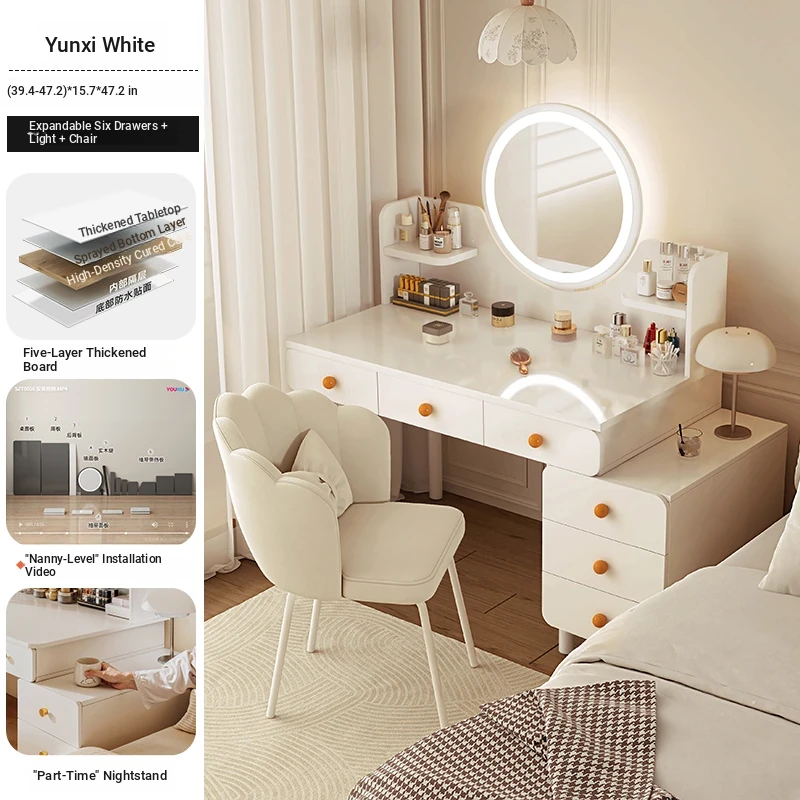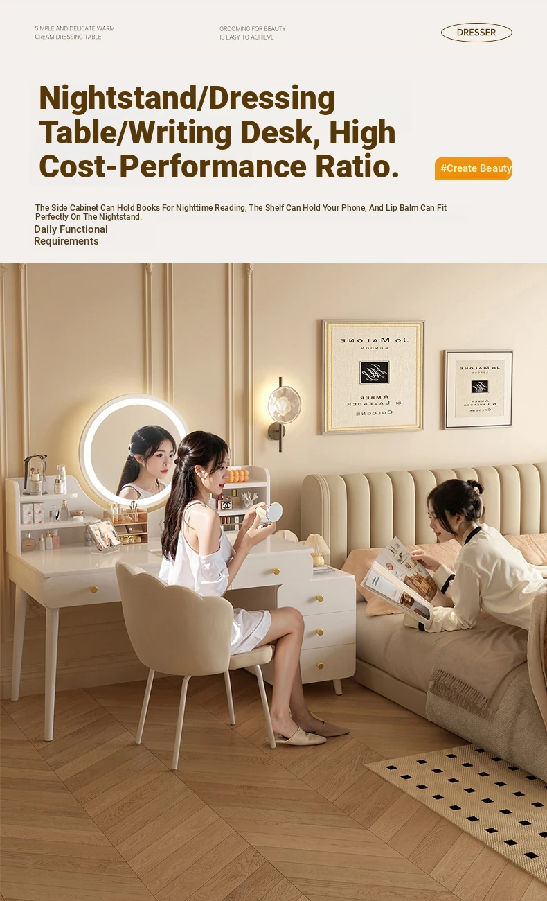 2025 New Cream-Style Makeup Vanity for Small Bedrooms - Modern Minimalist Dresser and Storage Cabinet with Integrated Mirror