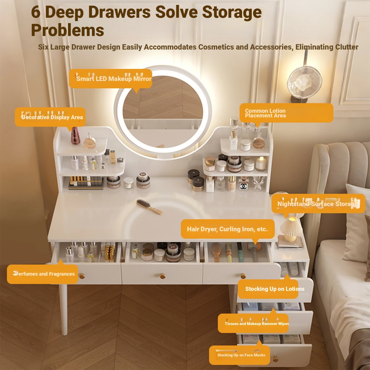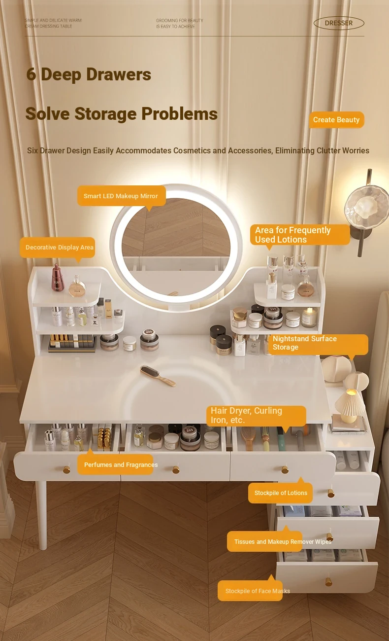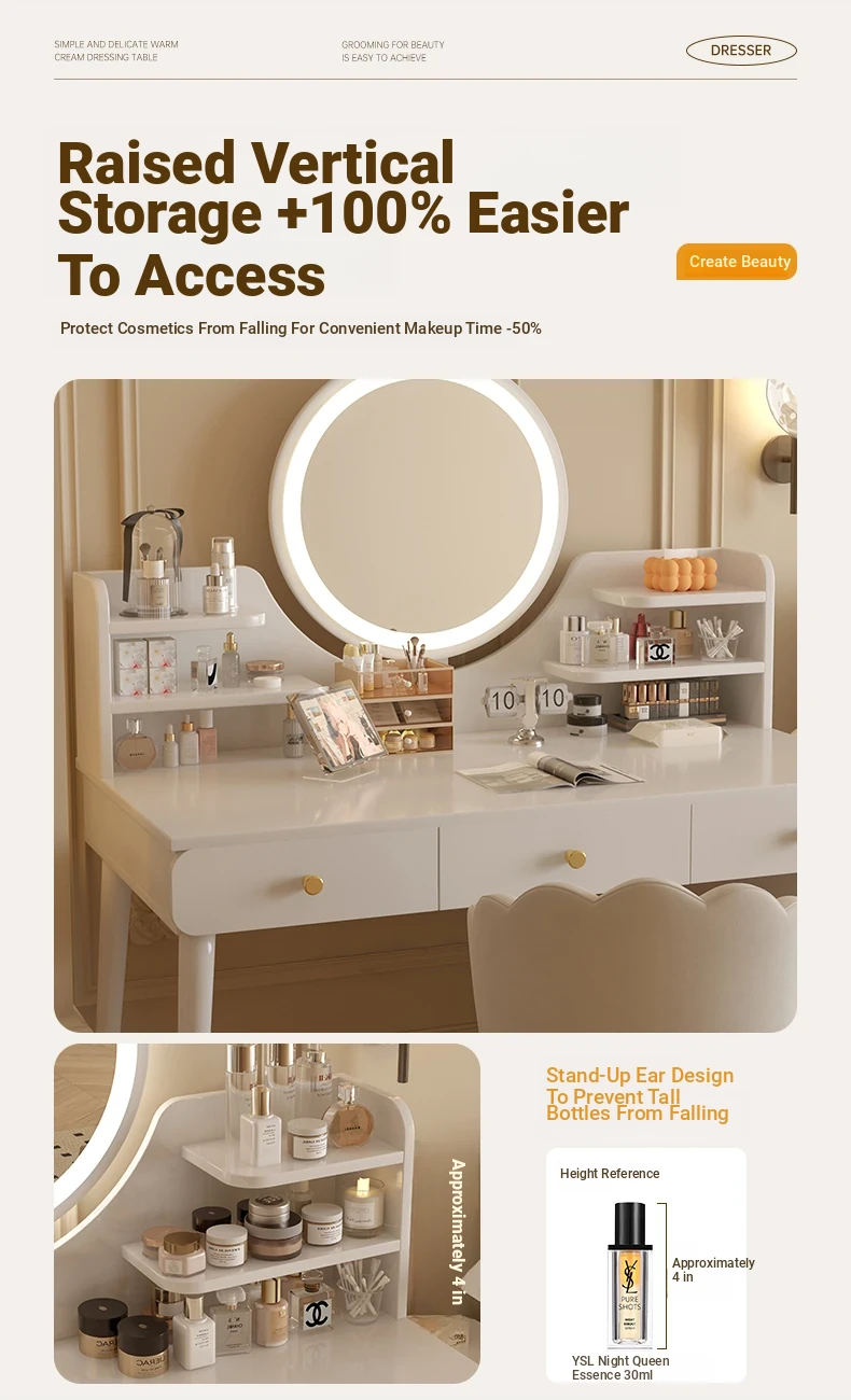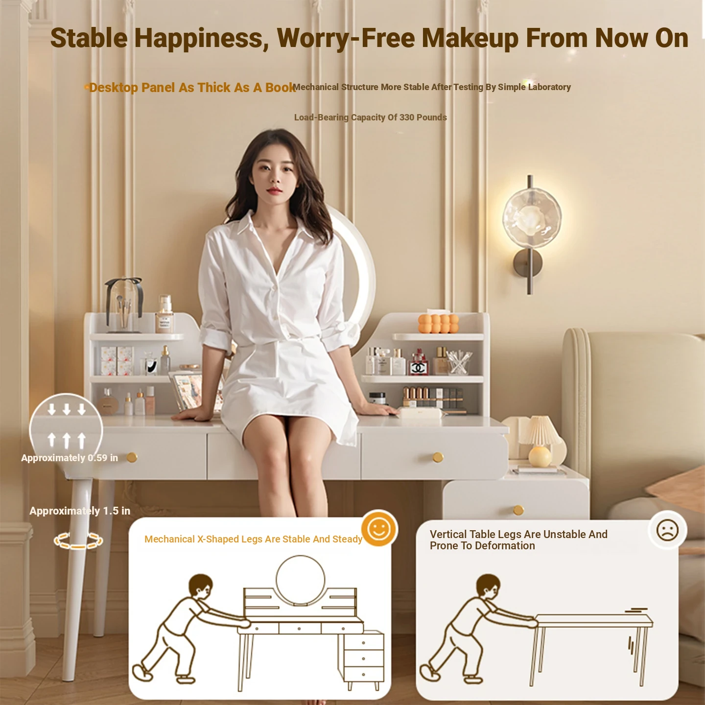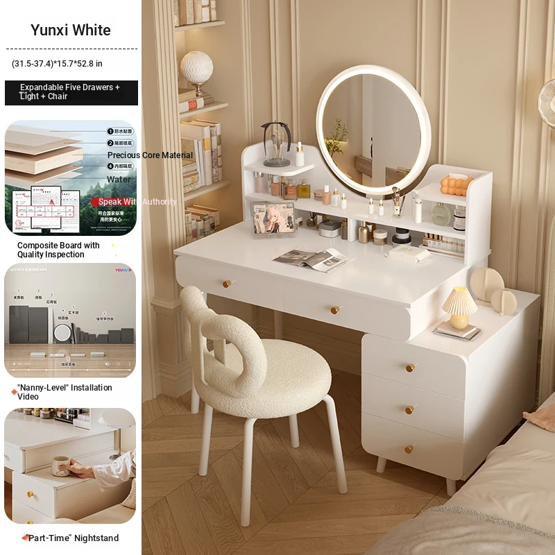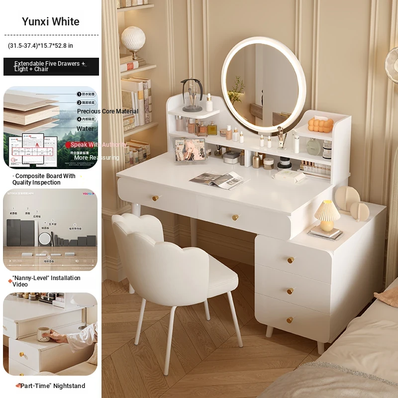 2025 New Cream-Style Makeup Vanity for Small Bedrooms - Modern Minimalist Dresser and Storage Cabinet with Integrated Mirror