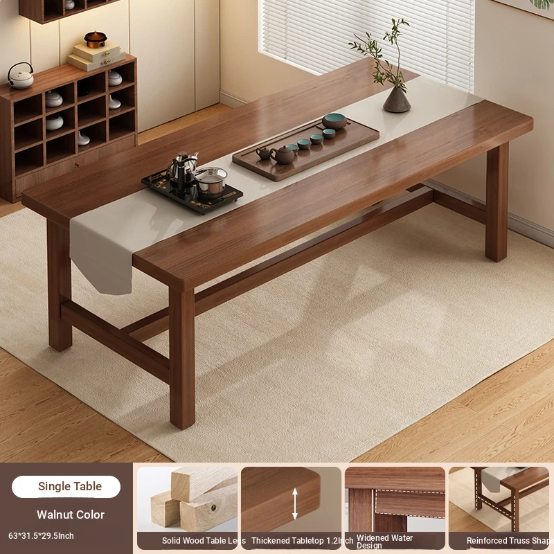 [Single table -0.59in desktop] walnut color 62.99in*23.62in*29.53in (home delivery) (solid wood legs + Artificial Board desktop)