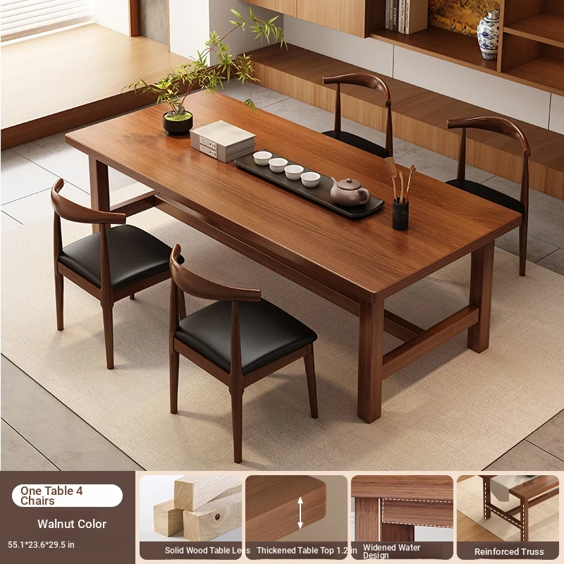 [A Table 4 chairs-solid wood armchair] walnut color 62.99in*31.50in*29.53in