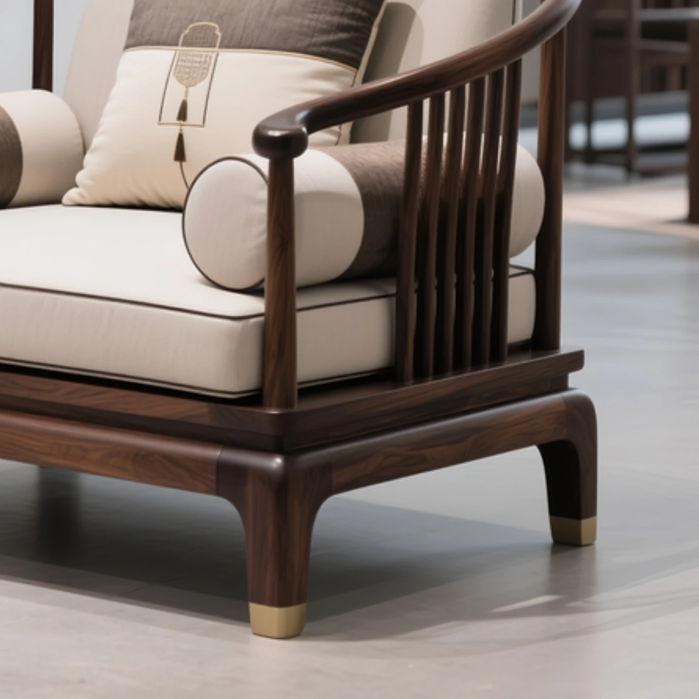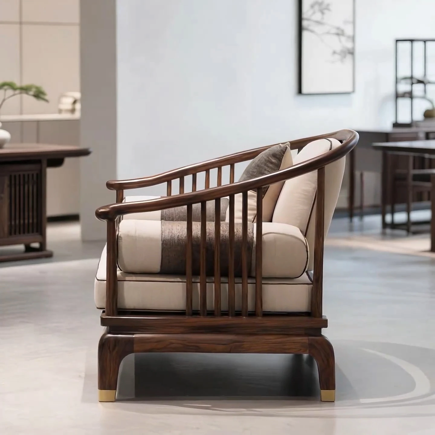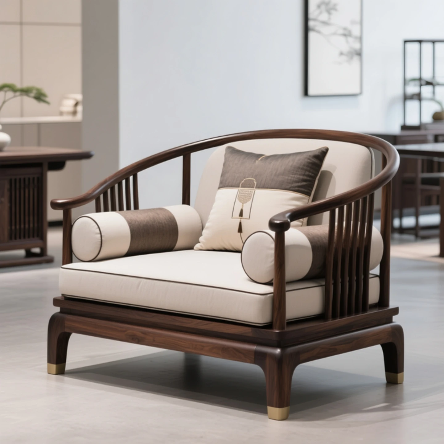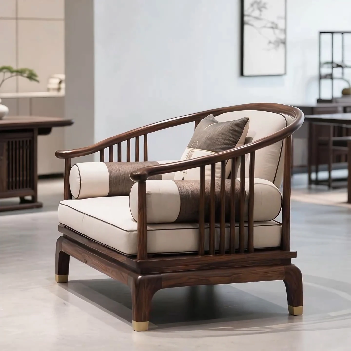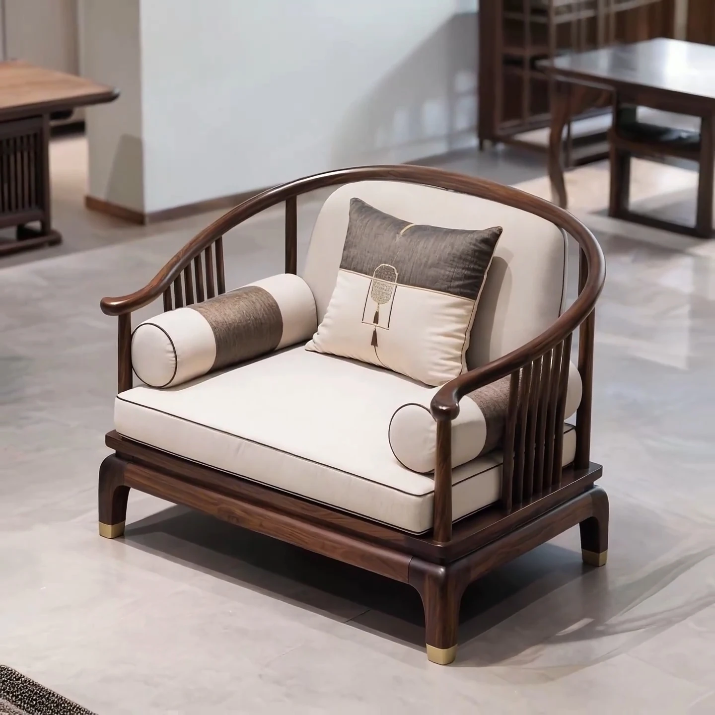 2025 New High-End Solid Wood Leather Armchair in Neo-Chinese Style - Walnut Living Room Lounge Chair, Perfect for Relaxation and Comfort