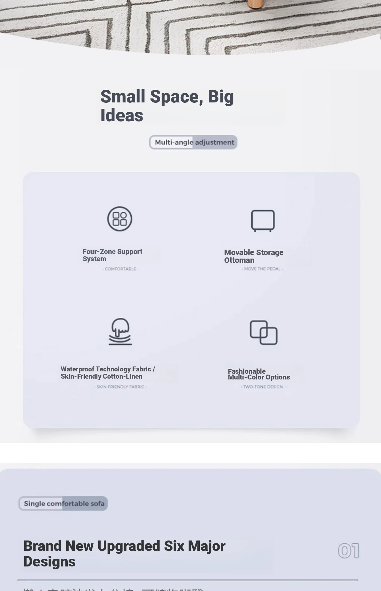 Upgrade latex light gray sofa [Waterproof 3D fabric]]