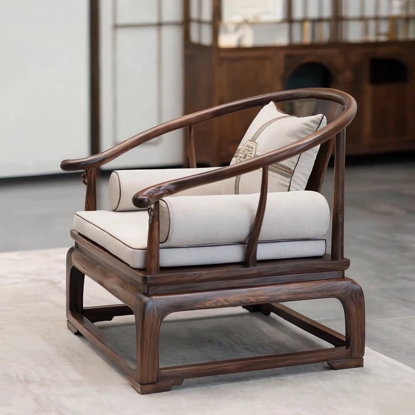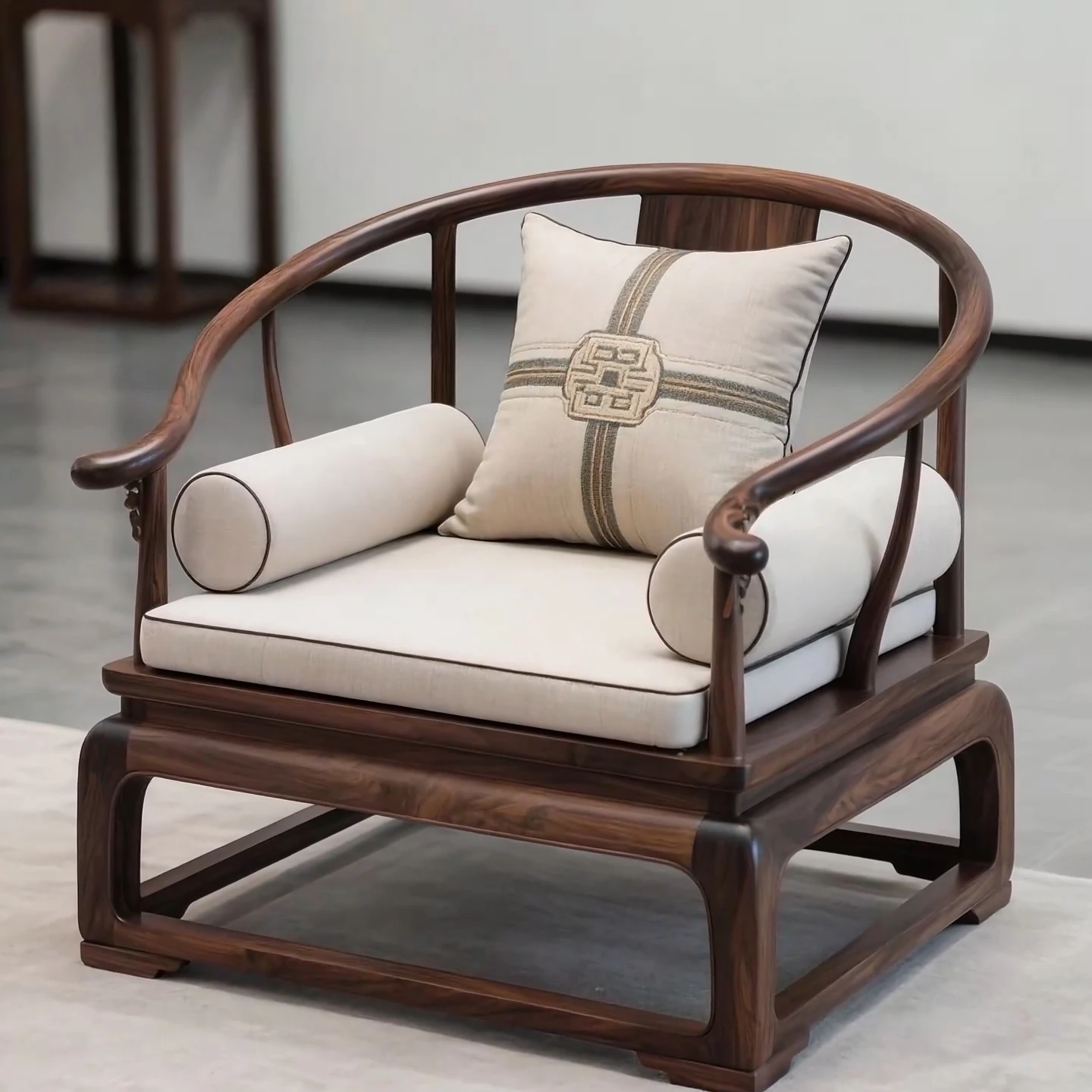 2025 New Luxury Solid Wood Single Leather Sofa Chair - Stylish Walnut Living Room Lounge Chair for Ultimate Relaxation