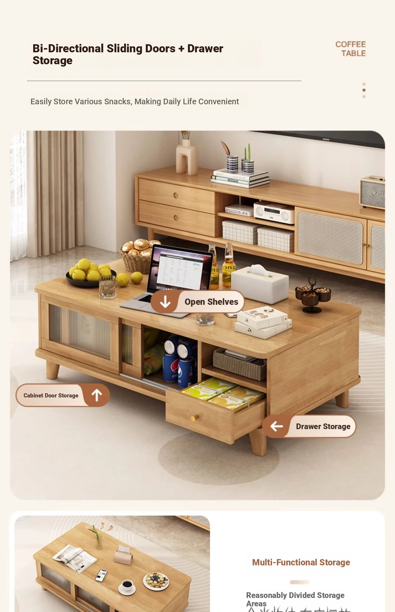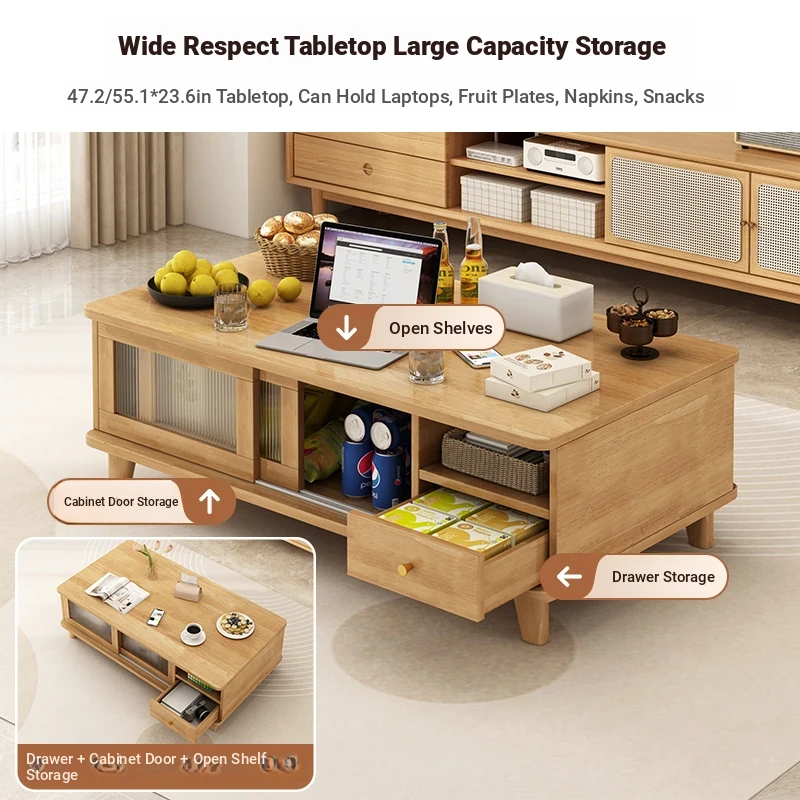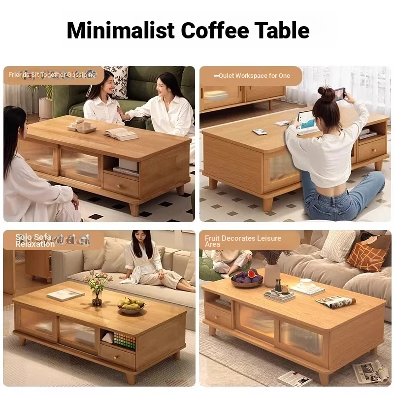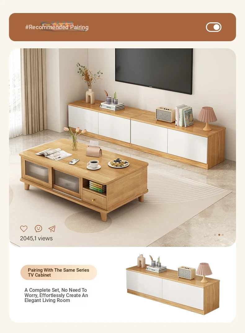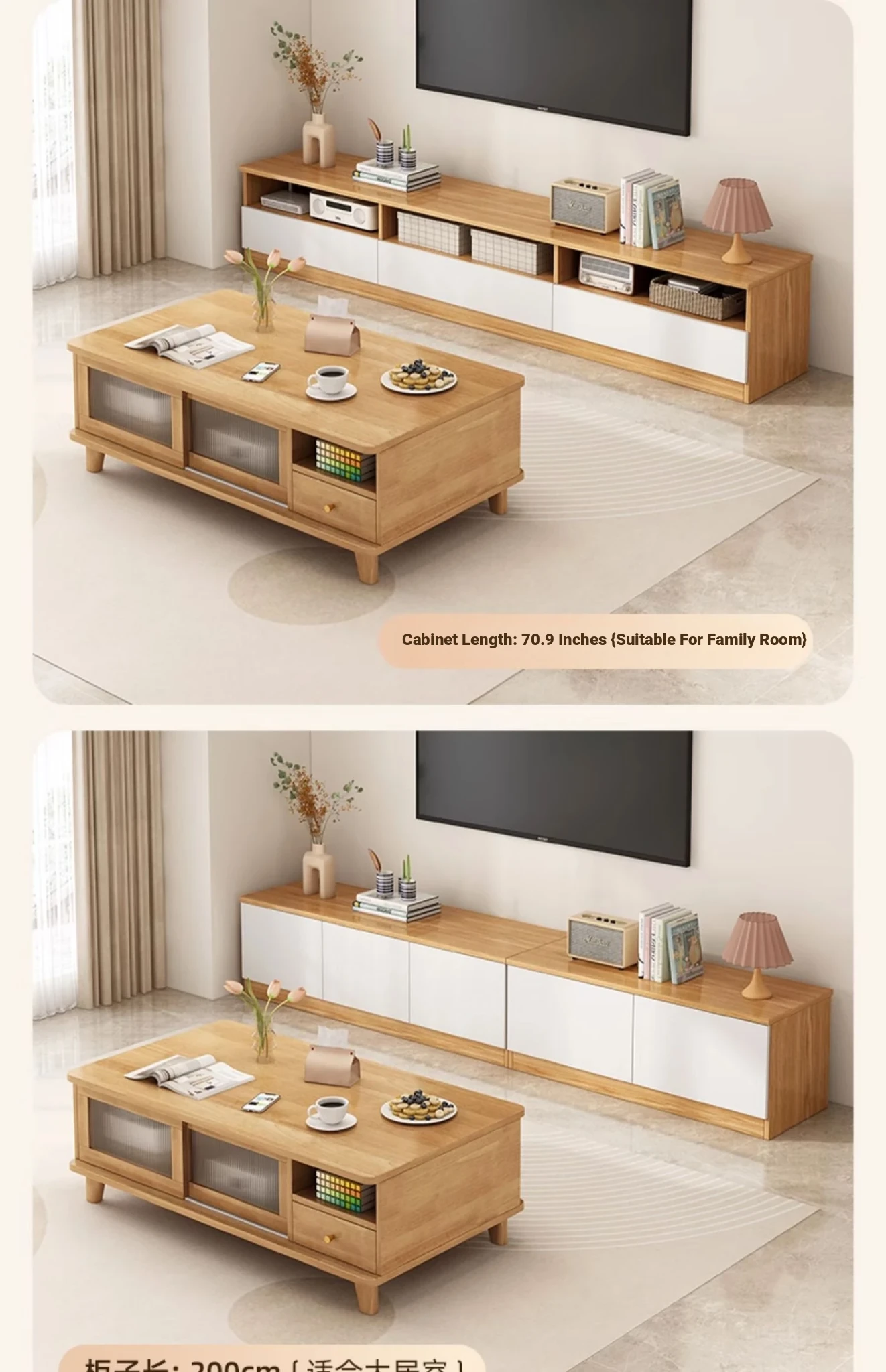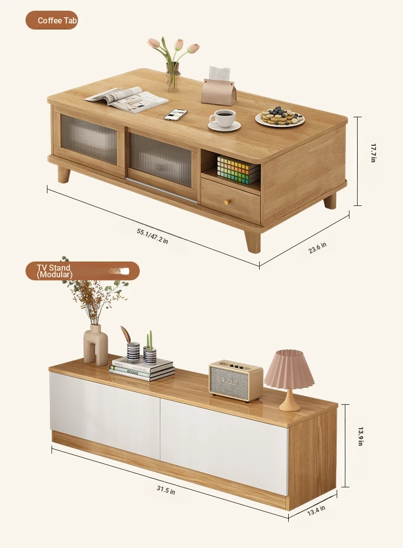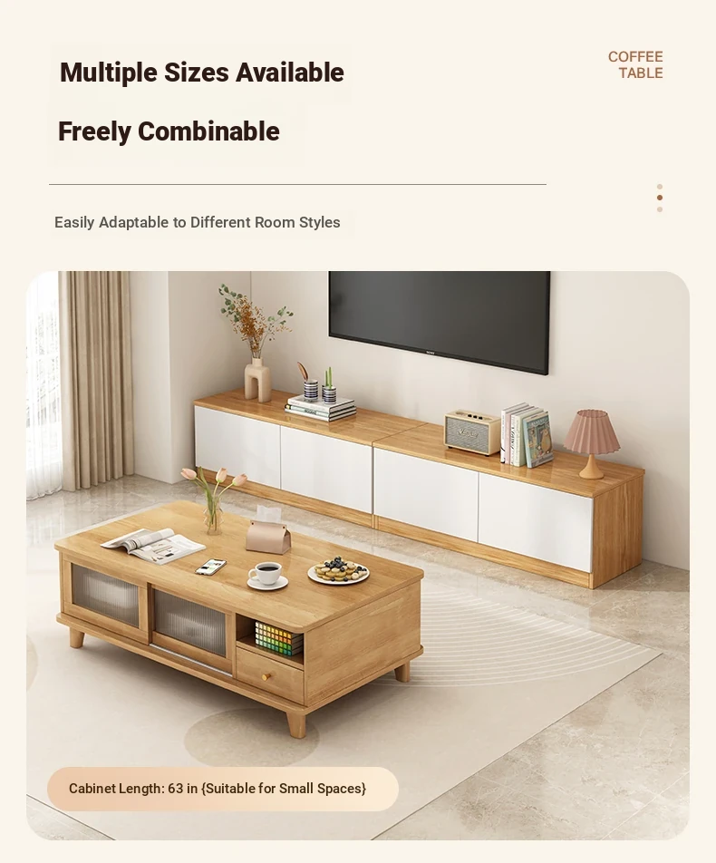 "2025 New Minimalist Solid Wood Coffee Table Set for Living Room - Stylish Sofa Table and TV Stand Combination for Small Spaces"