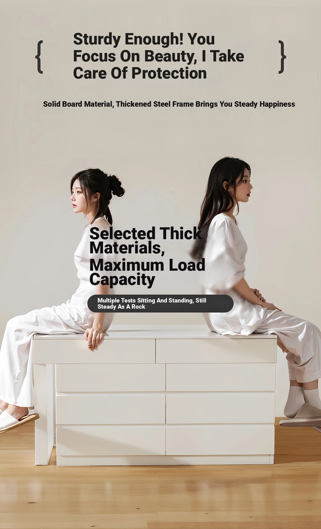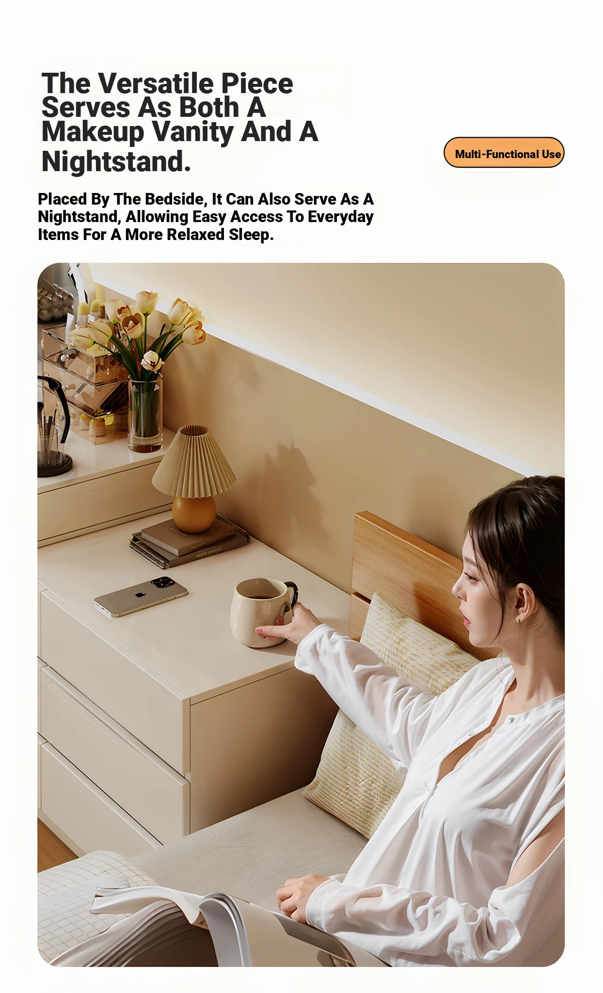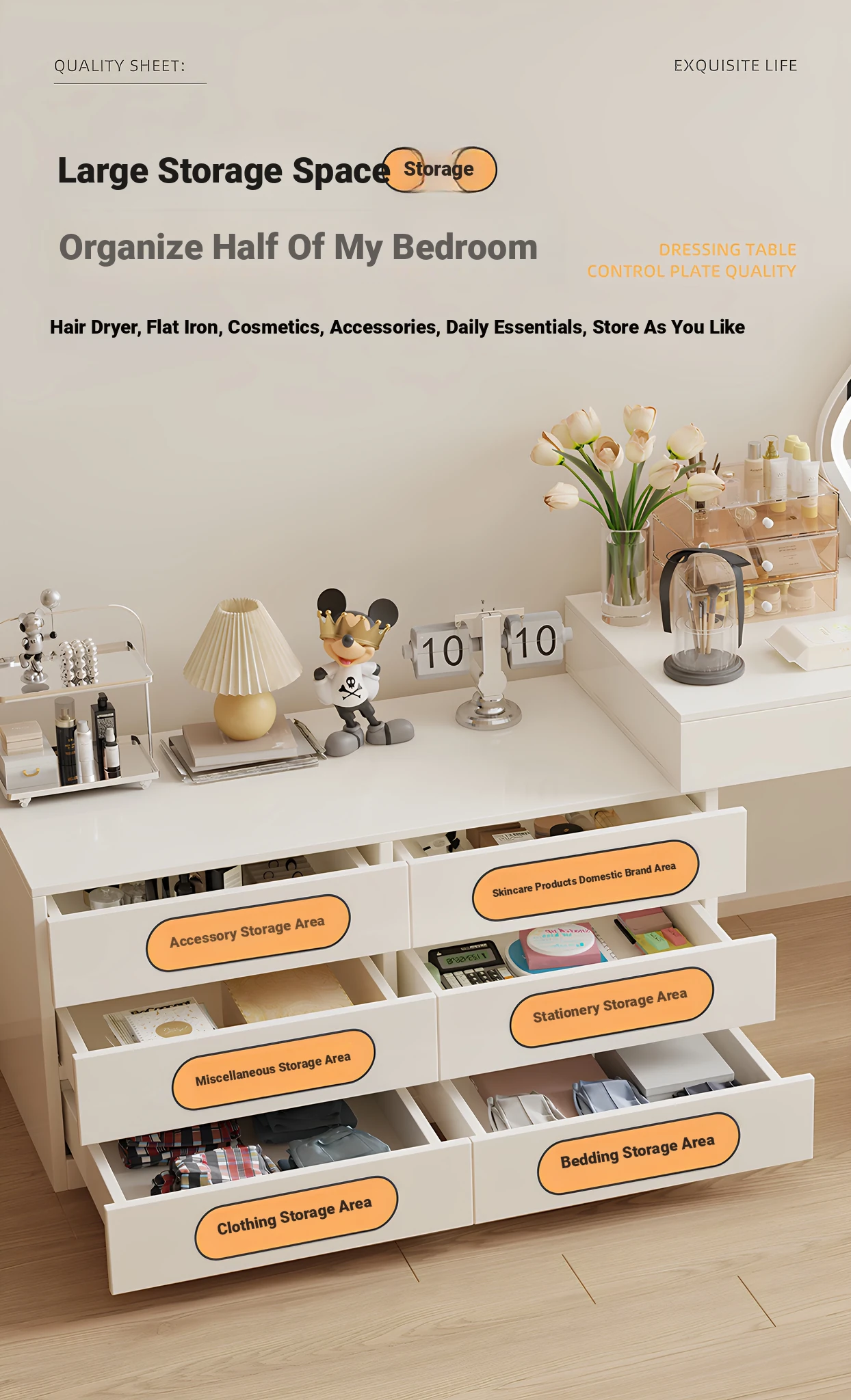 Main drawing⭐[Ganoderma Chair + Single Table + Six Bucket Cabinet] 39.37in Cream White
