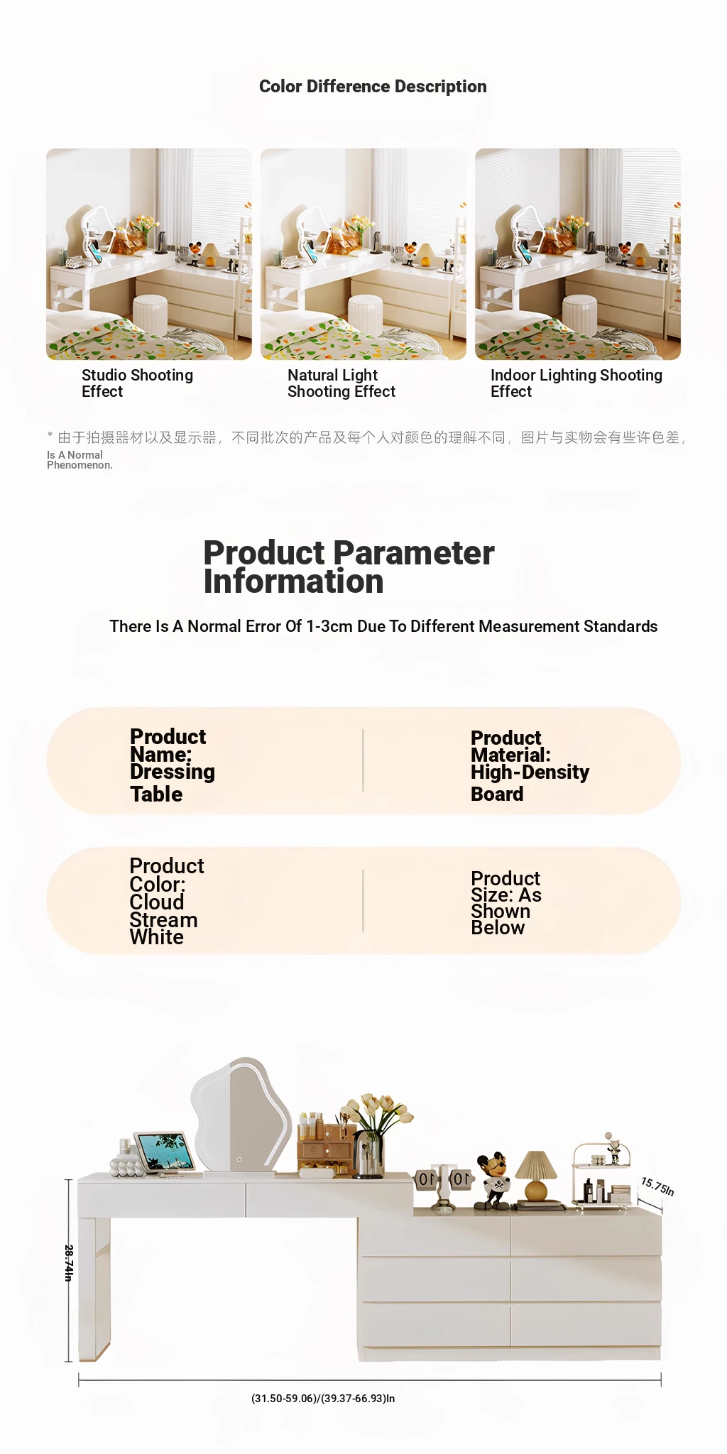 [Single table + three cabinets] 39.37in cream White